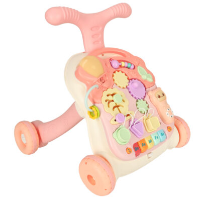 PUSH WALKER INTERACTIVE EDUCATIONAL TABLE 4IN1 PINK Pink interactive table: four products in one – elements of the set can be interchanged, transforming the product into a manipulative board, an educational table or a practical walker supports baby’s development – the set improves such skills as hand-eye coordination, manual skills, and helps take first steps…