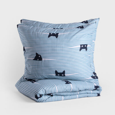 Cute and playful design with cats High-quality cotton fabric (100% cotton) Comfortable zip fastening Complete with bedding and pillowcase Cotton cat bedding 220 x 200 cm In the first moments of every morning you will be greeted by friendly cats, playfully looking out from behind the blue stripes. The SIRIUS bedding impresses with a lightweight…