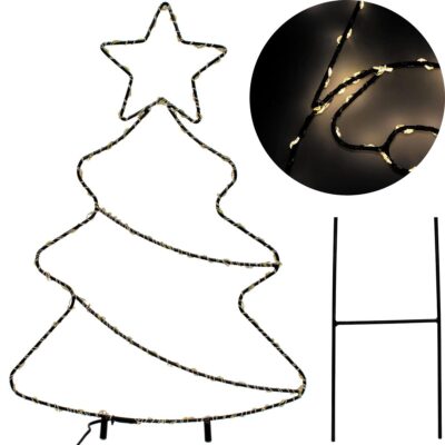 Do you want to bring a unique Christmas atmosphere to your garden without the clutter of wires? GARDEN CHOCOLINA STANDING Warm White 180 LED LAMP FOR BATTERY 30×69,5CM LUCA is a ready-made decoration that will light up your greenery all season long. in the shape of a Christmas tree with a star energy-saving LEDs battery-powered…