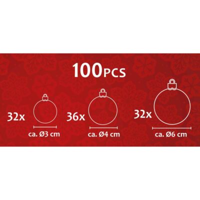 Do you dream of a Christmas tree decorated with silver baubles? Let your Christmas shine with elegance and style! Set of 100 silver baubles is the perfect solution to create a magical and harmonious arrangement. Make your dream of a unique Christmas tree come true! set includes 100 baubles of three different diameters and textures…