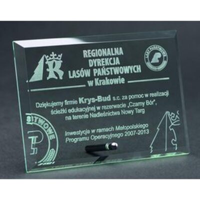 Engraved glass trophy Dimensions: H- 10 cm ORDER REALIZED AFTER ACCEPTANCE OF PROJECT – processing time 72h.
