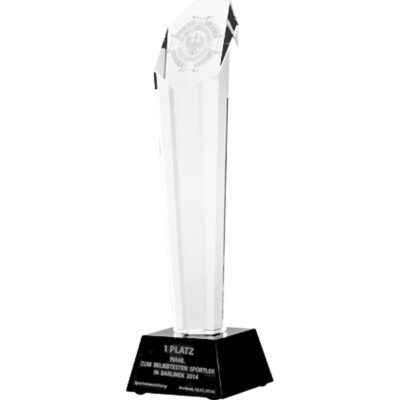 Engraved glass trophy with case + paint filling Dimensions: H-30 cm
