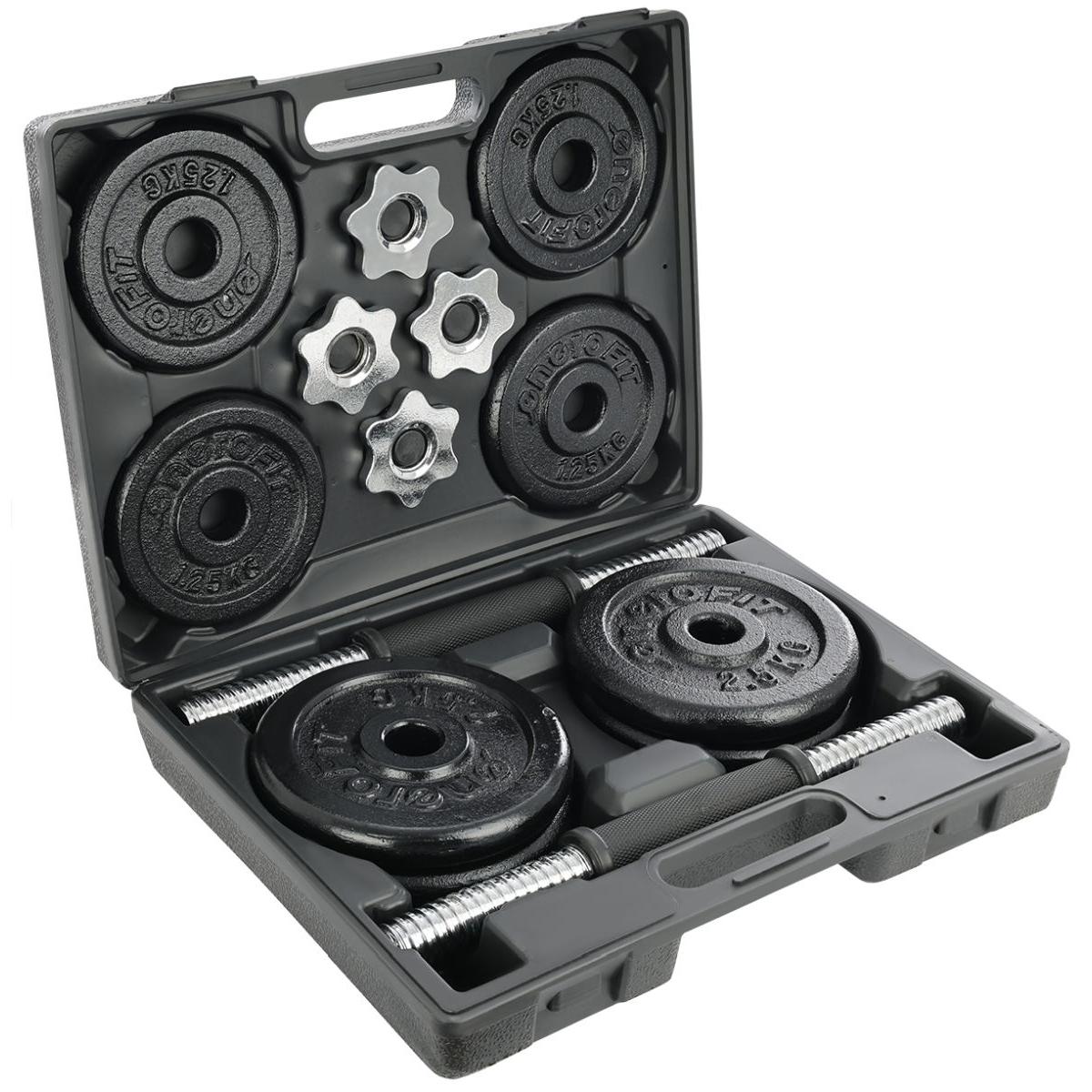 Improve your health and figure, increase your sculpture or muscle mass. With the suitcase of 2 x 9,5 kg iron dumbbells you will improve your training and achieve surprising results even at home.