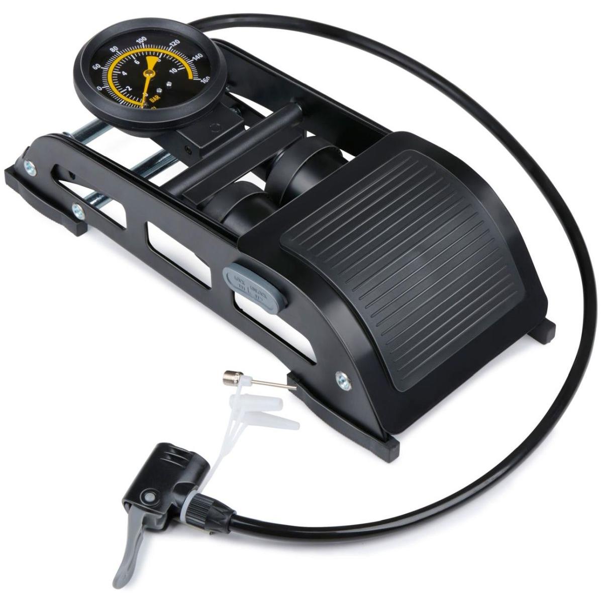2 PISTON FOOT PUMP WITH PRESSURE GAUGE BIKE CAR BALL DUNLOP