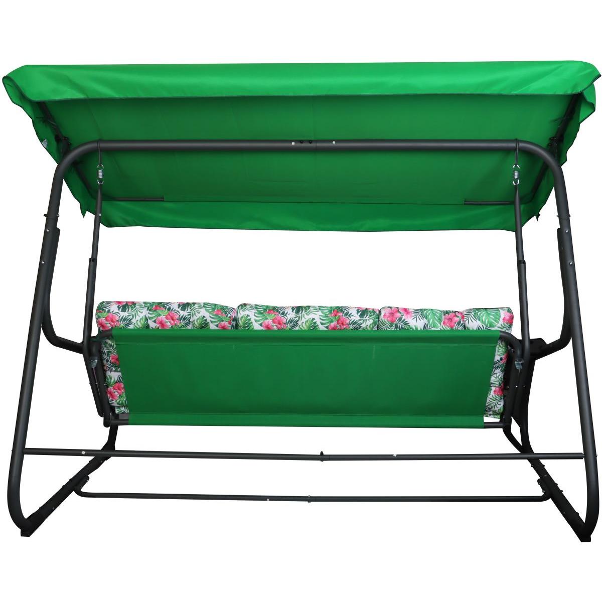 • material: 600D PVC polyester – cushions, 180gsm waterproof polyester canopy, steel – structure