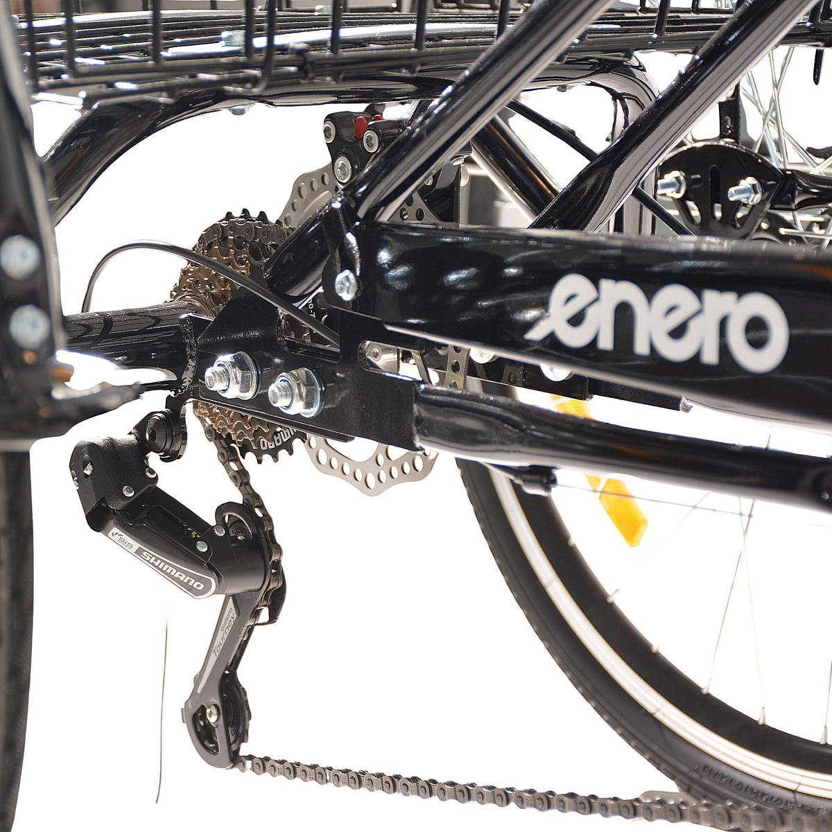 Proven Shimano gearing ensures smooth gear changes. The 7 gears make it easy to ride on a variety of surfaces, including with a heavier basket load, and help you adjust your effort level to the type of trail.