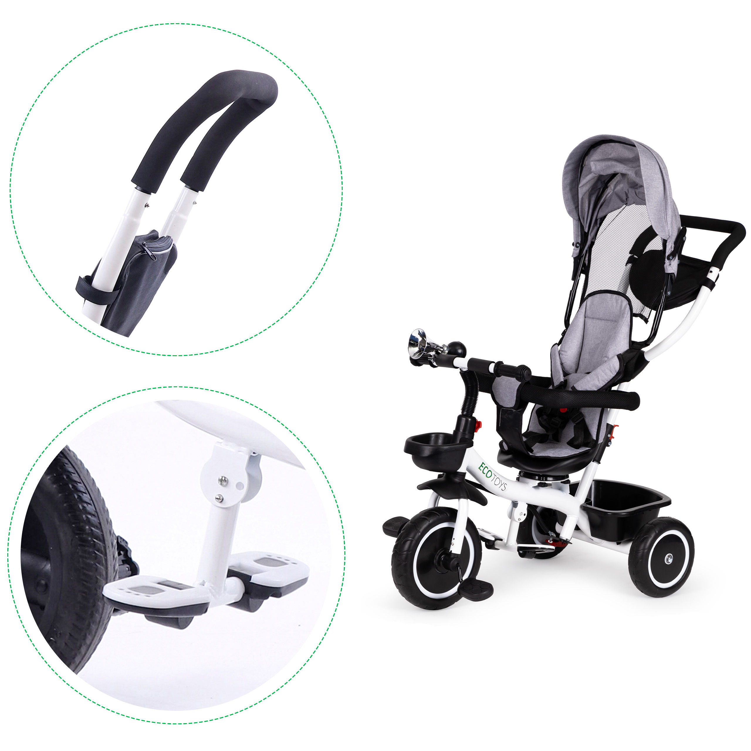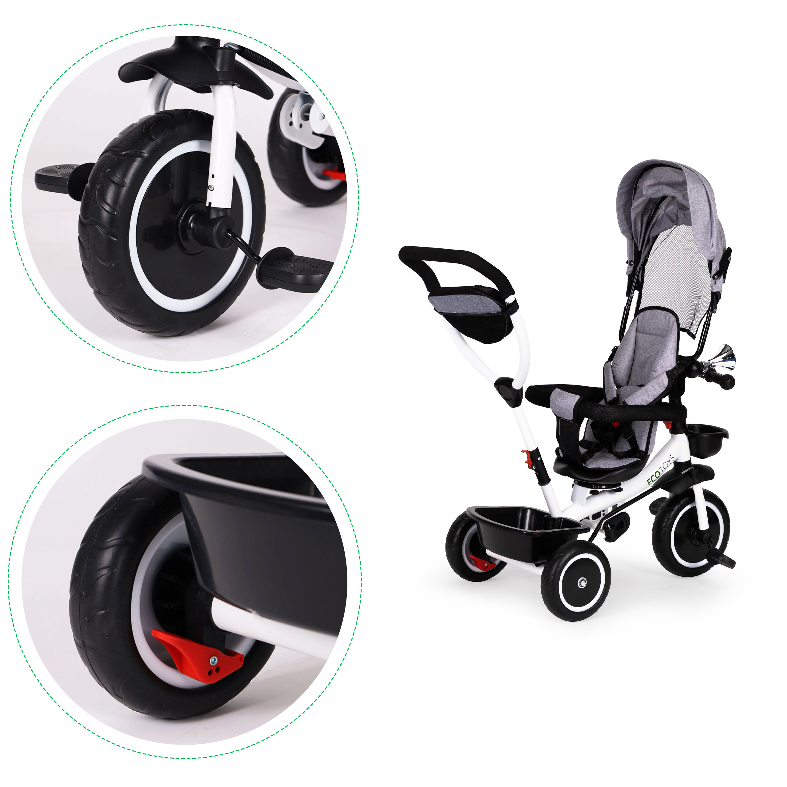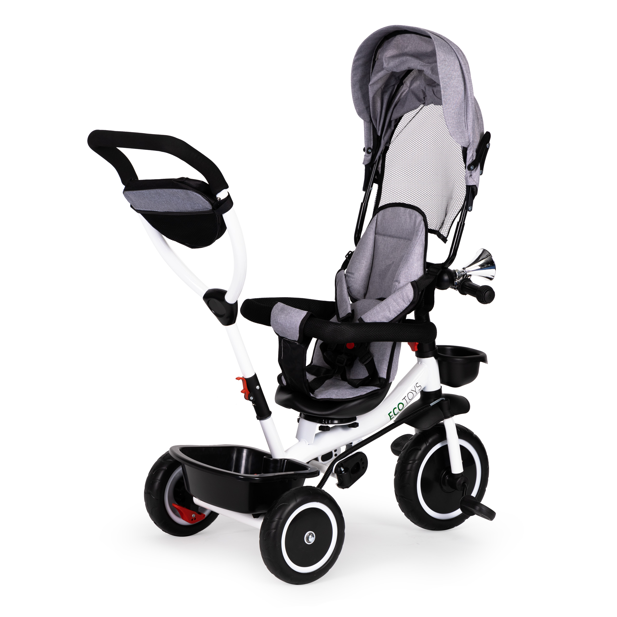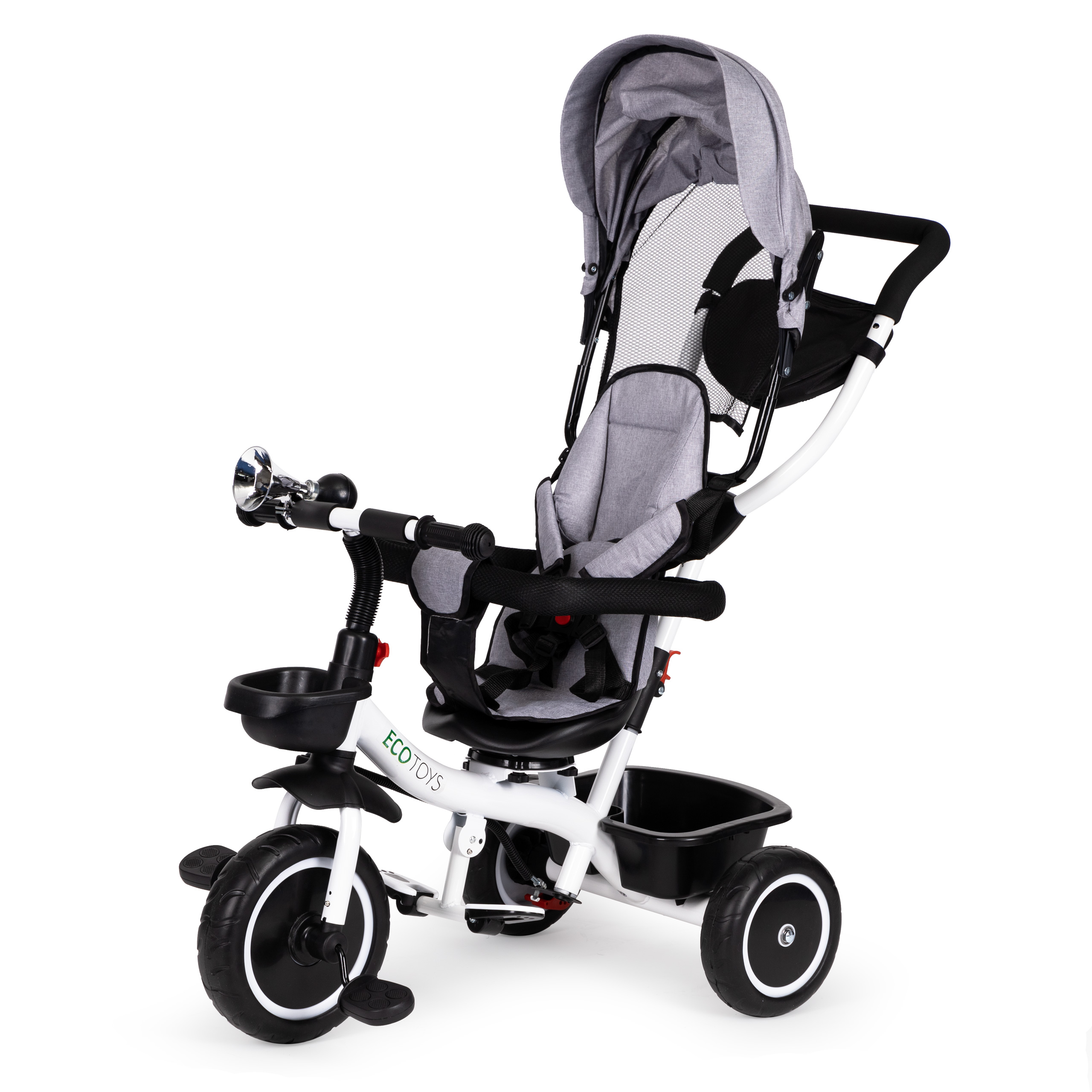 3-Wheel Tricycle Stroller with 360° Rotating Seat Grey ECOTOYS