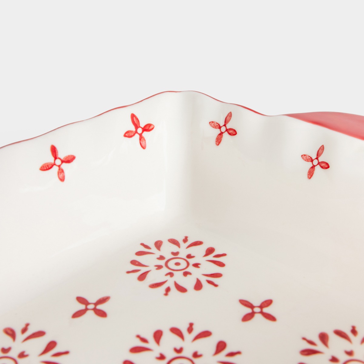 Made of high-quality stoneware, the dish guarantees durability and excellent heat distribution, allowing any dish to bake perfectly. Its resistance to high temperatures makes it practical and reliable, and the decorative details make it a beautiful table decoration.