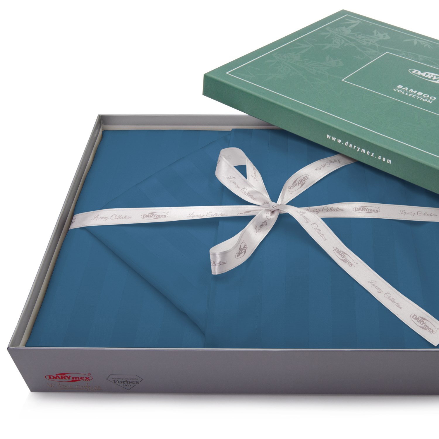 Exclusive bedding set made of the highest quality bamboo-cotton fabric of satin weave with a delicate sheen. The classic and stylish 2 cm wide striped pattern gives it a unique elegance. The fabric combines antibacterial and thermoregulatory properties with the durability and naturalness of cotton. It is very delicate and pleasant to the touch. The set is sewn in an elegant and careful way. The 70x80cm pillowcases have a 4 cm decorative trim, and the zipper is covered with a pleat. The whole set is packed in an exclusive box, which makes it a luxury gift. The bedding set is made of certified fabrics.