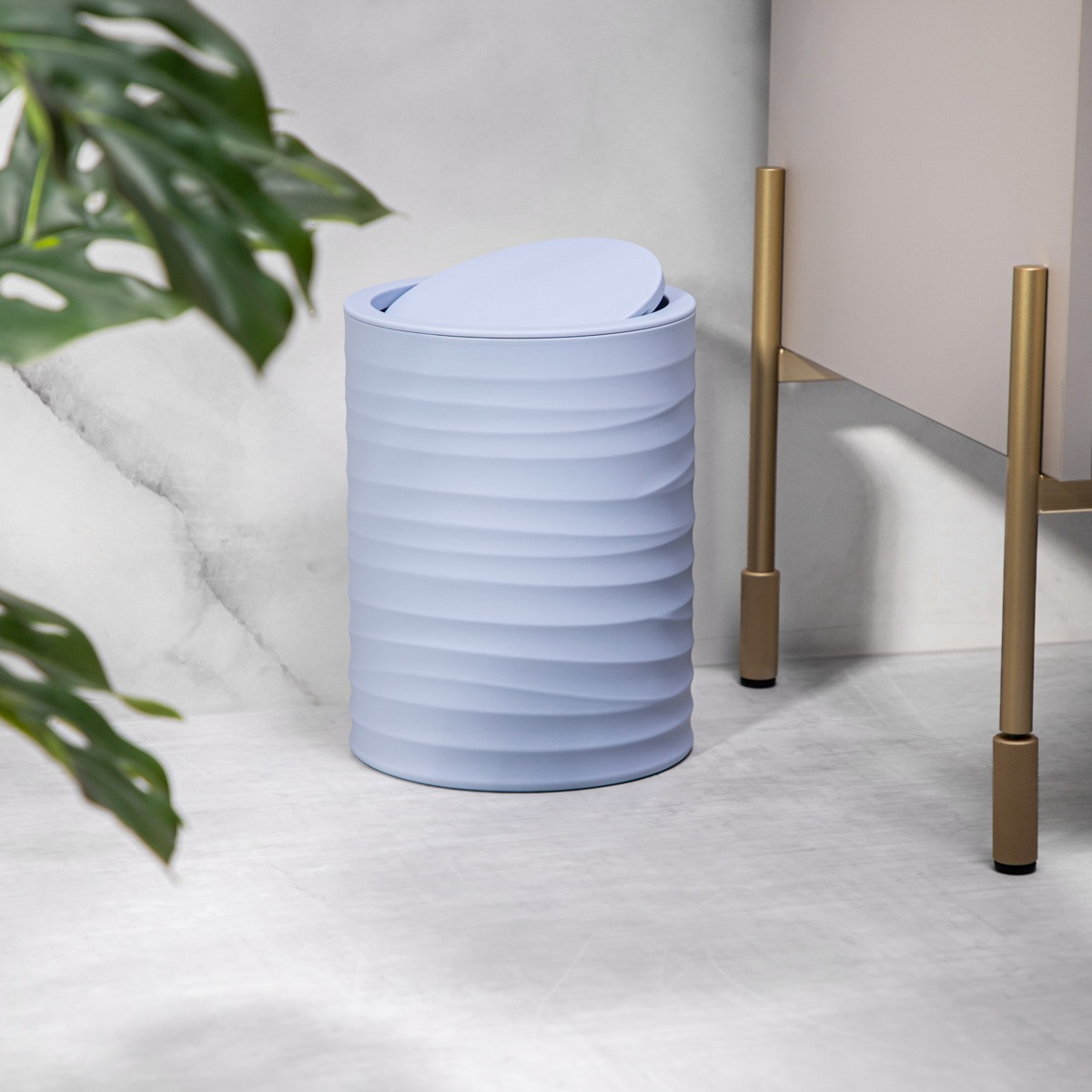 Stylish and practical, the TORUS basket is the ideal solution for any bathroom. Thanks to its compact dimensions, it will fit into any corner, and the elegant embossing and blue color will bring a touch of freshness to the interior. Made of moisture-resistant plastic, it is ideal for everyday use.