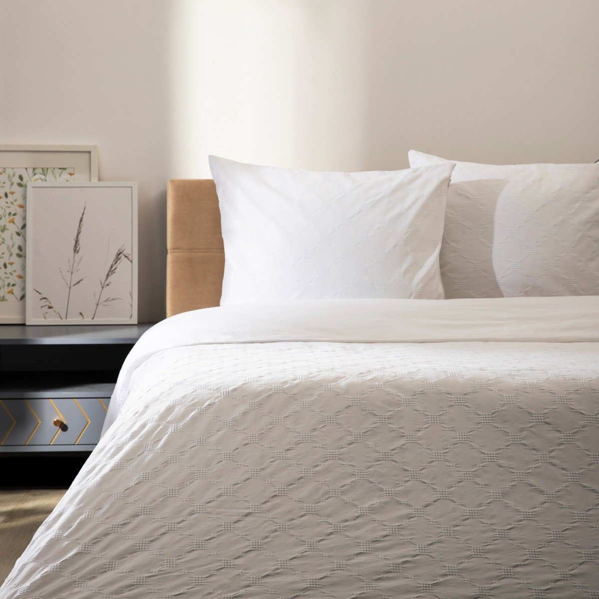 JAKAD is a bedding that enchants with its simplicity and unique form. The white jacquard fabric creates a harmonious whole, fitting perfectly into both modern and classic interiors. It is also the perfect option for a practical gift.