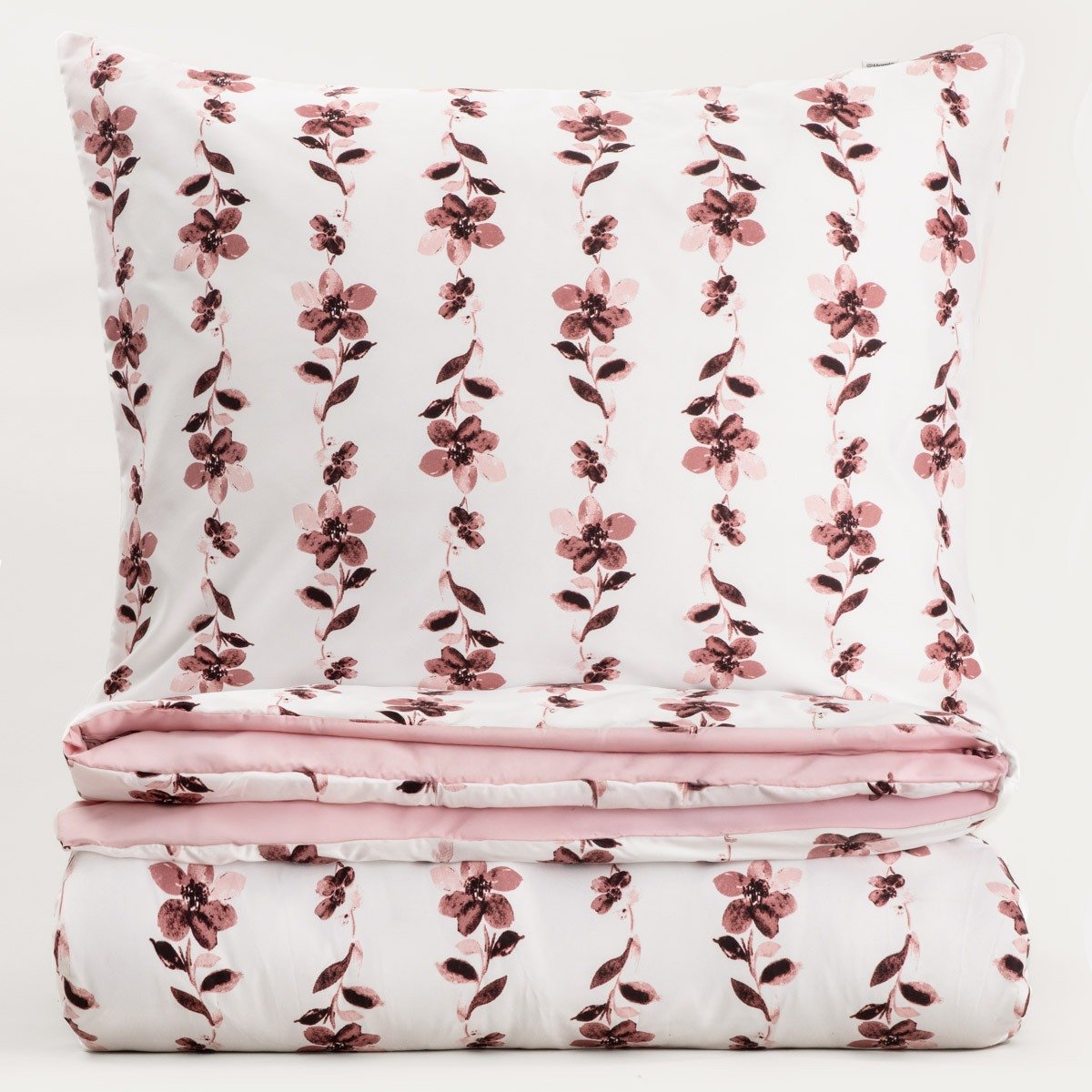 The AMORE bedding in the 160 × 200 cm size combines sleeping comfort and a soft, romantic design. The pink flowers on a white background bring a fresh, subtle atmosphere to the bedroom, while the soft microfiber ensures a comfortable and pleasant sleep every night. This set is also the perfect choice for an elegant gift for a loved one.