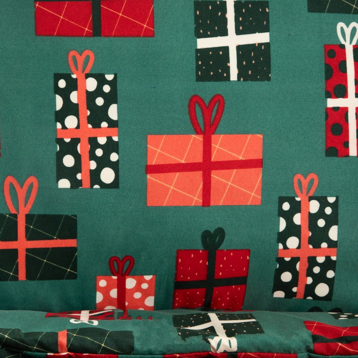 With the CATERINA Christmas bedding, the interior of your bedroom will take on a festive touch but will not change its calm and harmonious decor. It is the ideal choice to create a Christmas arrangement whose gentleness will promote a good night’s rest. The gift motif is associated with Santa Claus, Christmas and the new year, so the bedroom décor will be topical for weeks to come.