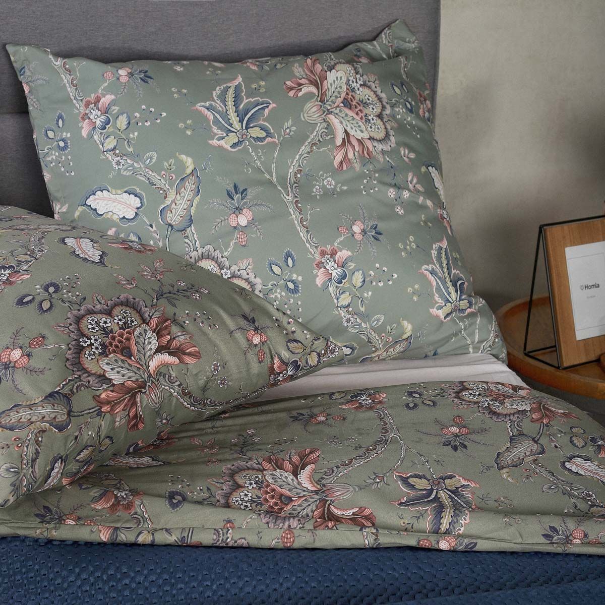 Bedding | CLARAS | microfibre grey with leaves and flowers | 160×200 cm | SS23 997901