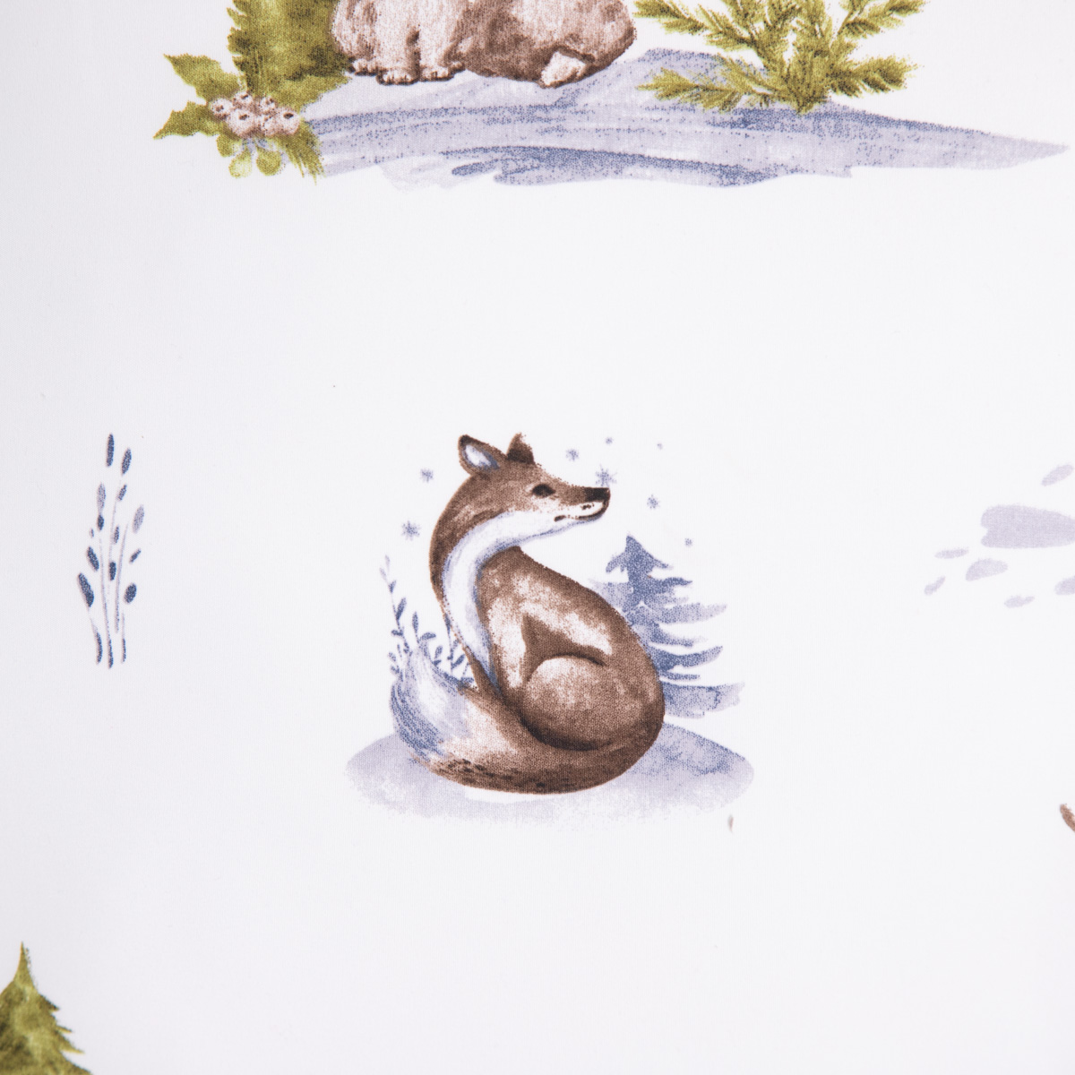 The bed ding is double-sided. On one side it has a solid light brown color. On the other, it has a white background and a delicate pattern with a winter mood – reindeer accompanied by a wooden house with a snowy roof and coniferous trees. The bedding measures 160 x 200 cm. The set also includes two pillowcases measuring 70 x 80 cm. The pillowcases for both duvet and pillows are closed with zips.