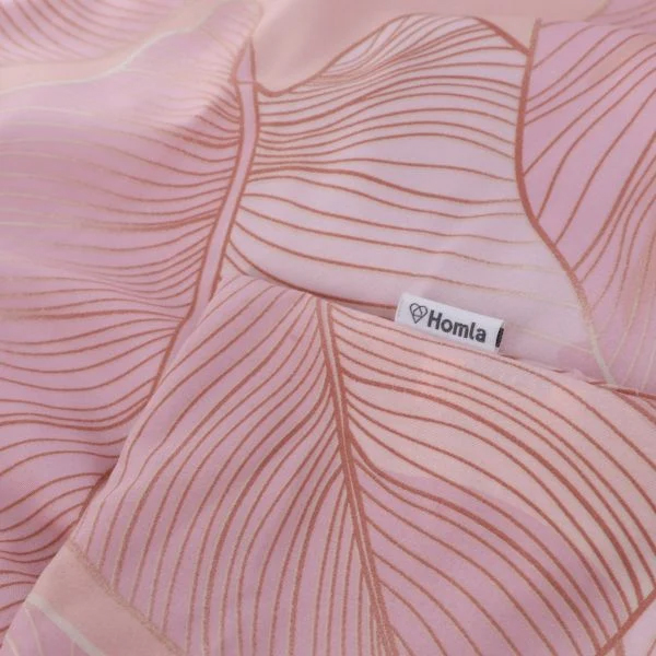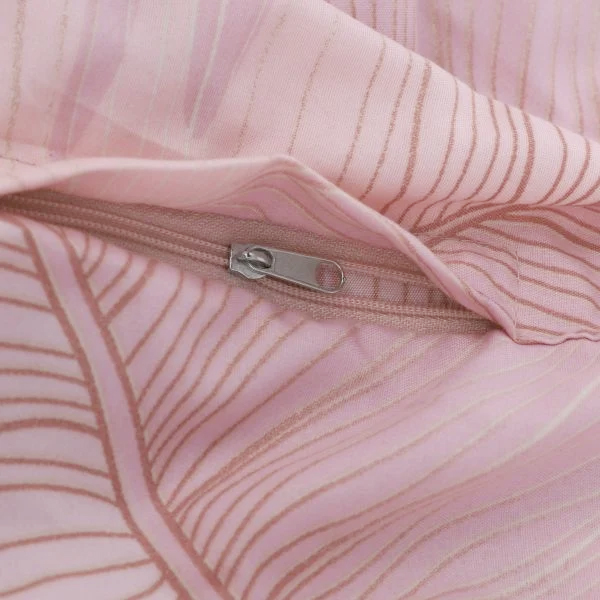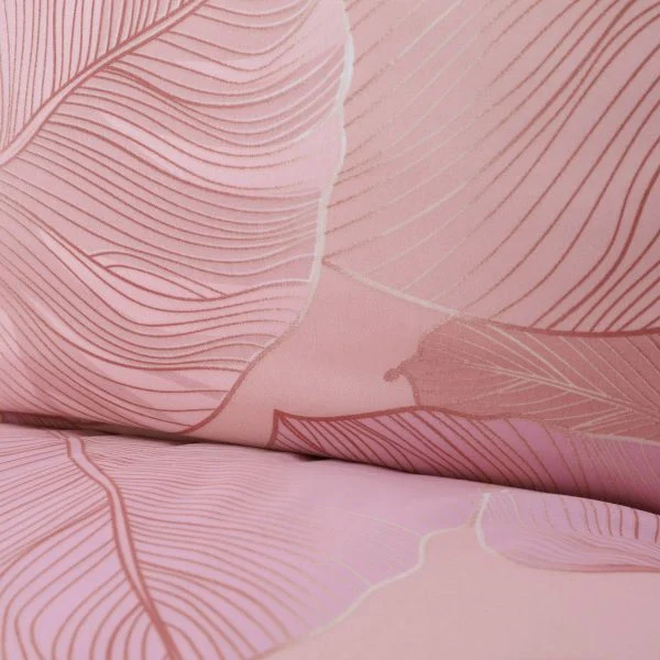 Microfiber bedding pink with leaves 140 x 200 cm