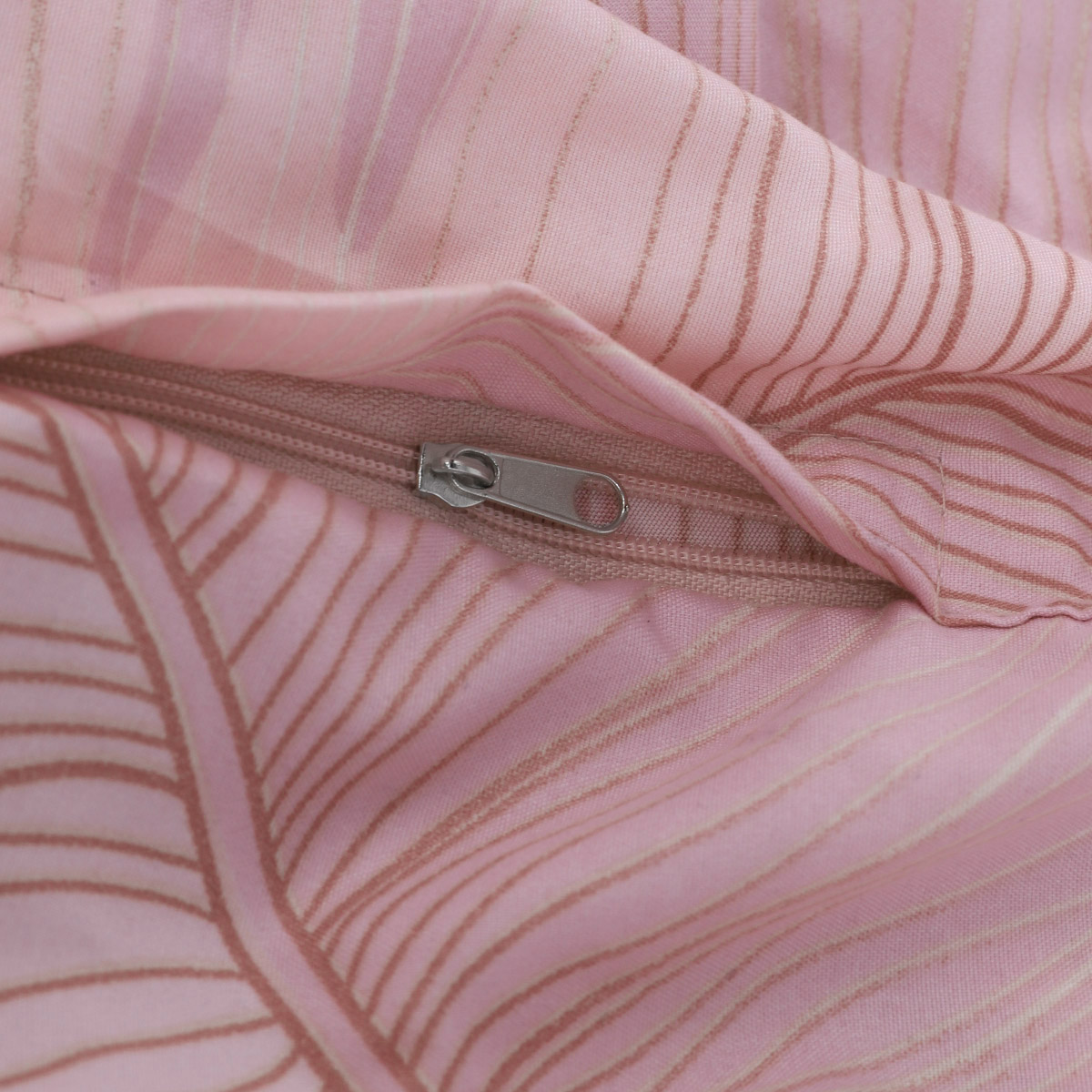 The GALLO set is maintained in varying shades of pink. The dynamic print depicts large leaves outlined in classic gold. The set includes a 160×200 cm comforter cover and two 70×80 cm pillowcases. For greater convenience of use, they are closed with a zipper.