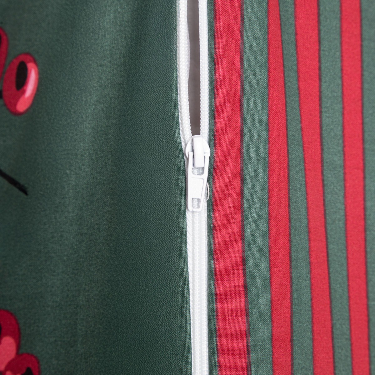 Red and green are timeless festive colors that will blend well into any Christmas setting. The double-sided bedding has a design with sprigs of holly on a green background on one side and green and red stripes on the other. Cotton bedding in a festive motif is a beautiful decoration for your bedroom, as well as a good gift idea for a loved one.