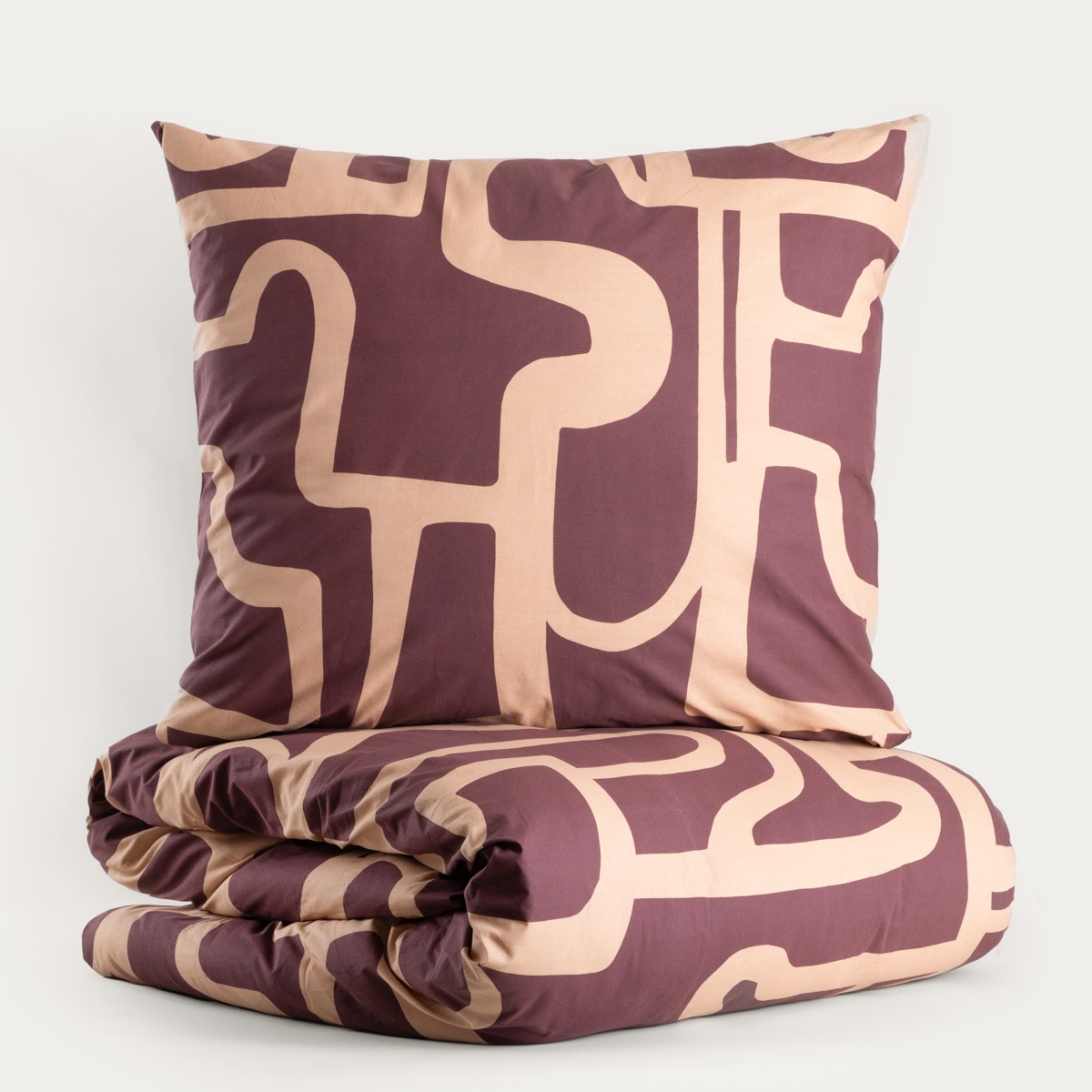 KARMEN bedding is the perfect combination of comfort and modern style. The abstract-inspired pattern in muted shades of beige and deep maroon gives your interior a cosy yet elegant feel. The set consists of one duvet cover 160 x 200 cm and two pillowcases 70 x 80 cm.