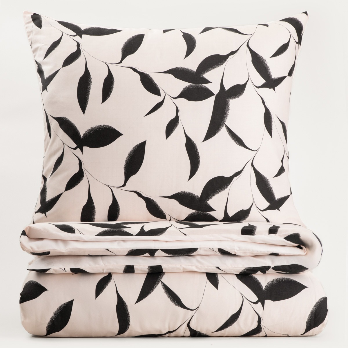 The bedding set is made of 110 gsm cotton. The cotton satin bedding is smooth, soft and cool to the touch. The pillowcases are zipped. The bedding should be washed at max. 30°C and iron at max. 150°C. Do not tumble dry the bedding.
