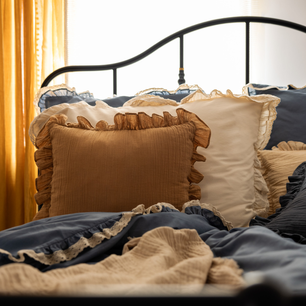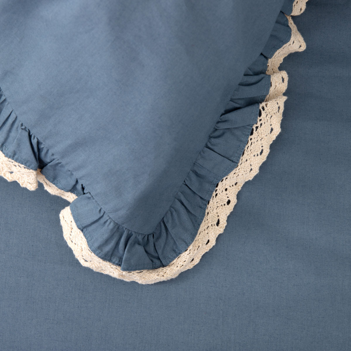 The MOISES pillowcases will provide a beautiful setting for the duvet and pillows and at the same time protect them from dirt and damage. The entire bedding is kept in blue and the edges are decorated with frills with white lace. It has a very attractive appearance, which makes it a great decoration for the bed during the day and a pleasant covering for the body at night.