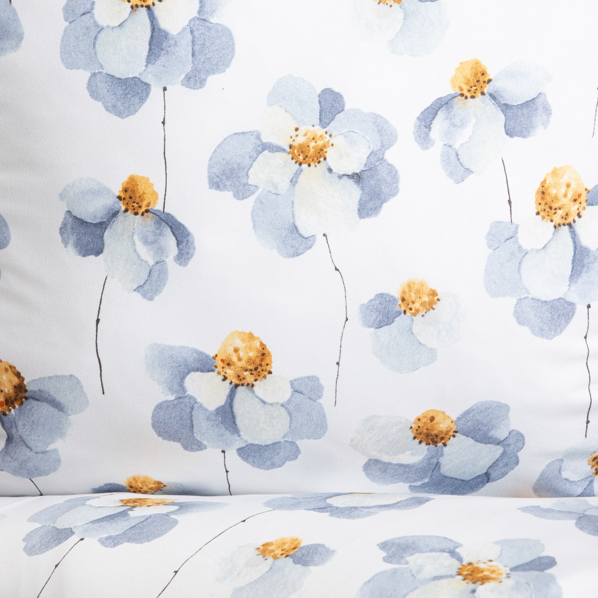 The REITA bedding will be a subtle accent to refresh and brighten up your bedroom arrangement. Its artistic flower pattern on a light background brings an atmosphere of calmness and softness. The microfiber provides a high level of comfort – offering softness and warmth while being durable.