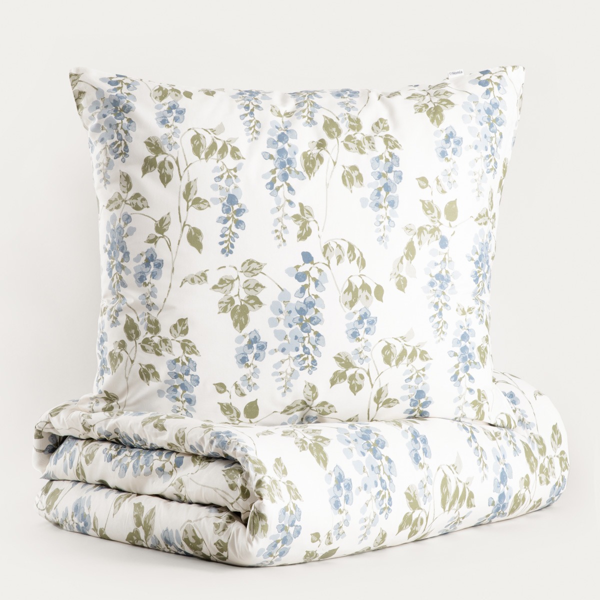 If you’re dreaming of a bedroom that combines the subtlety of nature with cosiness, SELINA bedding will meet your expectations. Its soft color palette of muted blue and olive green creates a harmonious pattern that promotes calm and relaxation. The delicate design blends well with both light and darker interior elements.