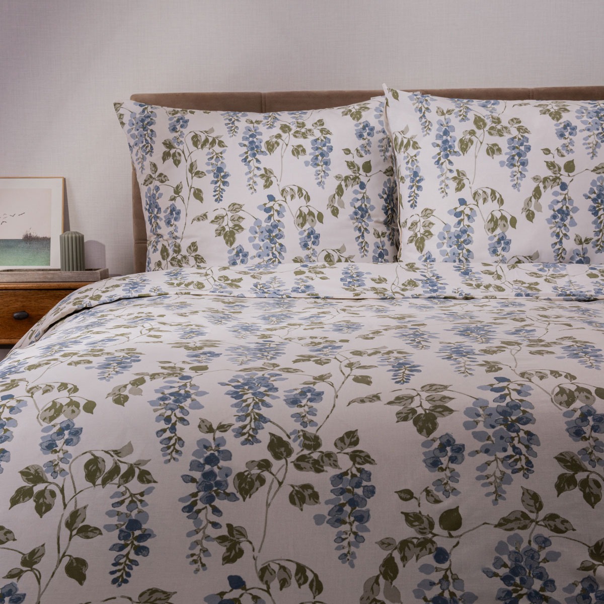 Are you looking for bedding that will bring freshness, lightness and natural charm to your bedroom? The SELINA set is the perfect choice. The floral motif in subtle shades of blue and green on a white background creates a harmonious whole, and the soft cotton ensures a comfortable night’s sleep every night.