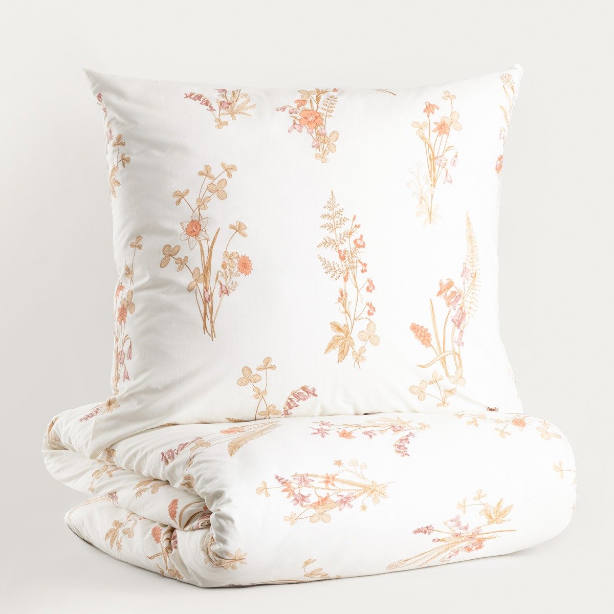 The bedding set is made of cotton. It is a natural material that is airy and gentle on the skin. The weight of the cotton fabric is 115 g/m². The pillowcases are fastened with a convenient zip. The duvet cover has a zip sewn on the longer side. The duvet should be washed at max. 30°C. Can be ironed at max. 150°C. The duvet should not be tumble-dried.
