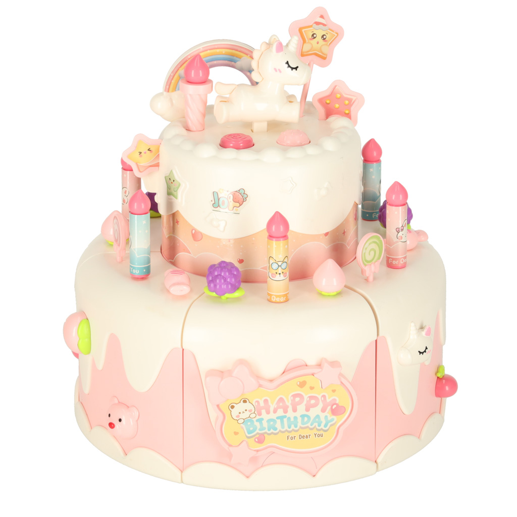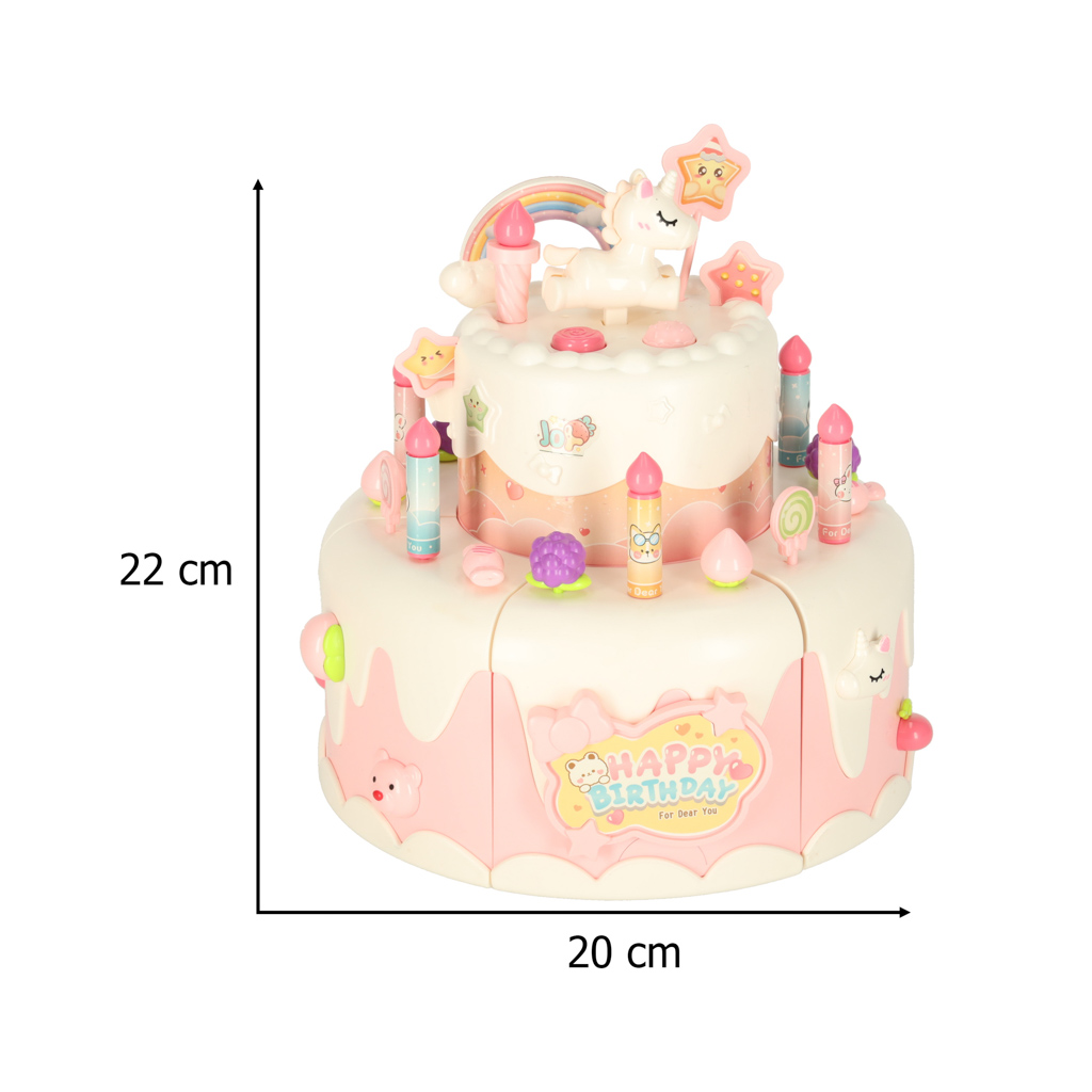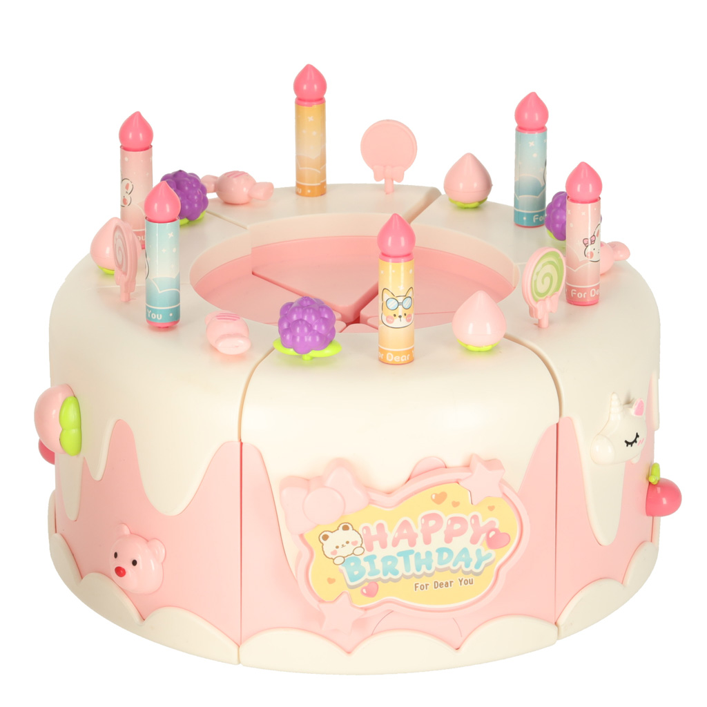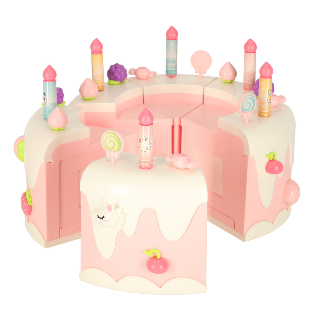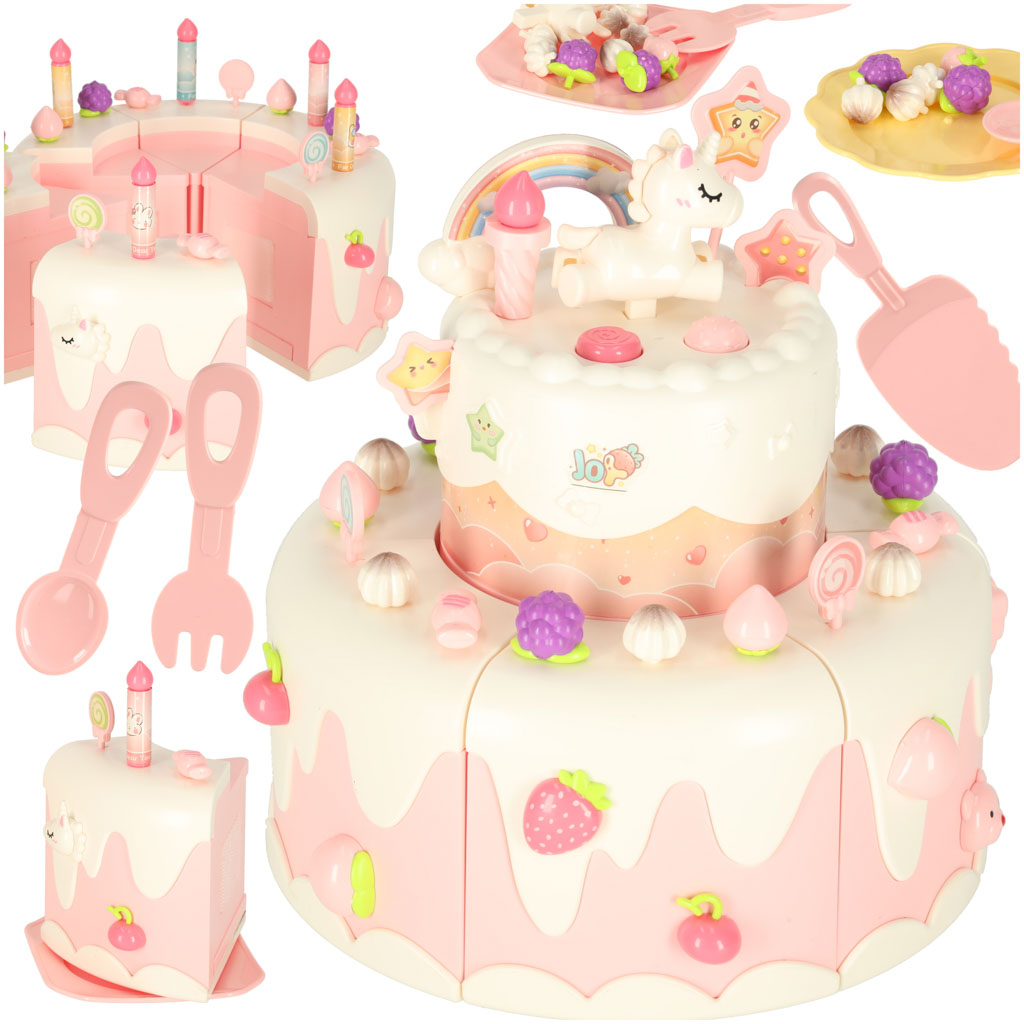 Birthday cake pile cutting velcro music light kitchen 16 pieces pink