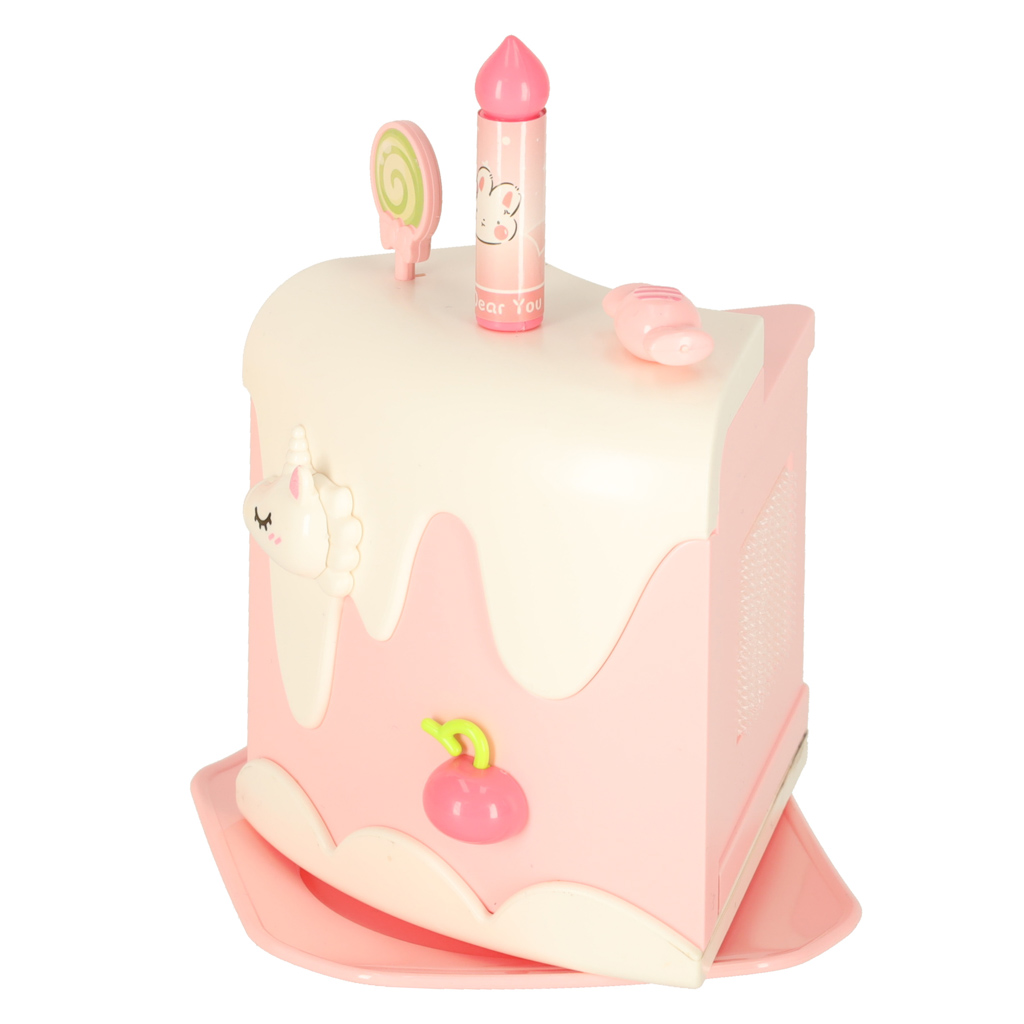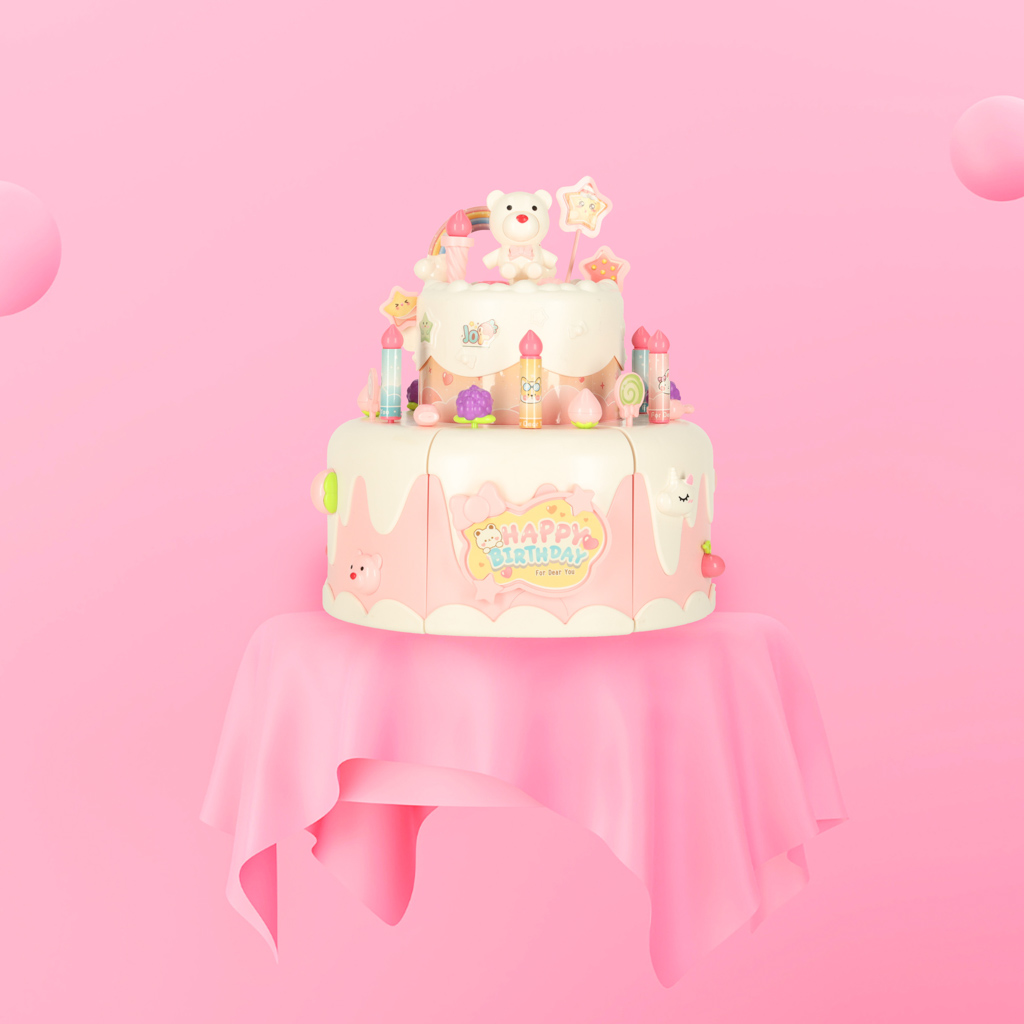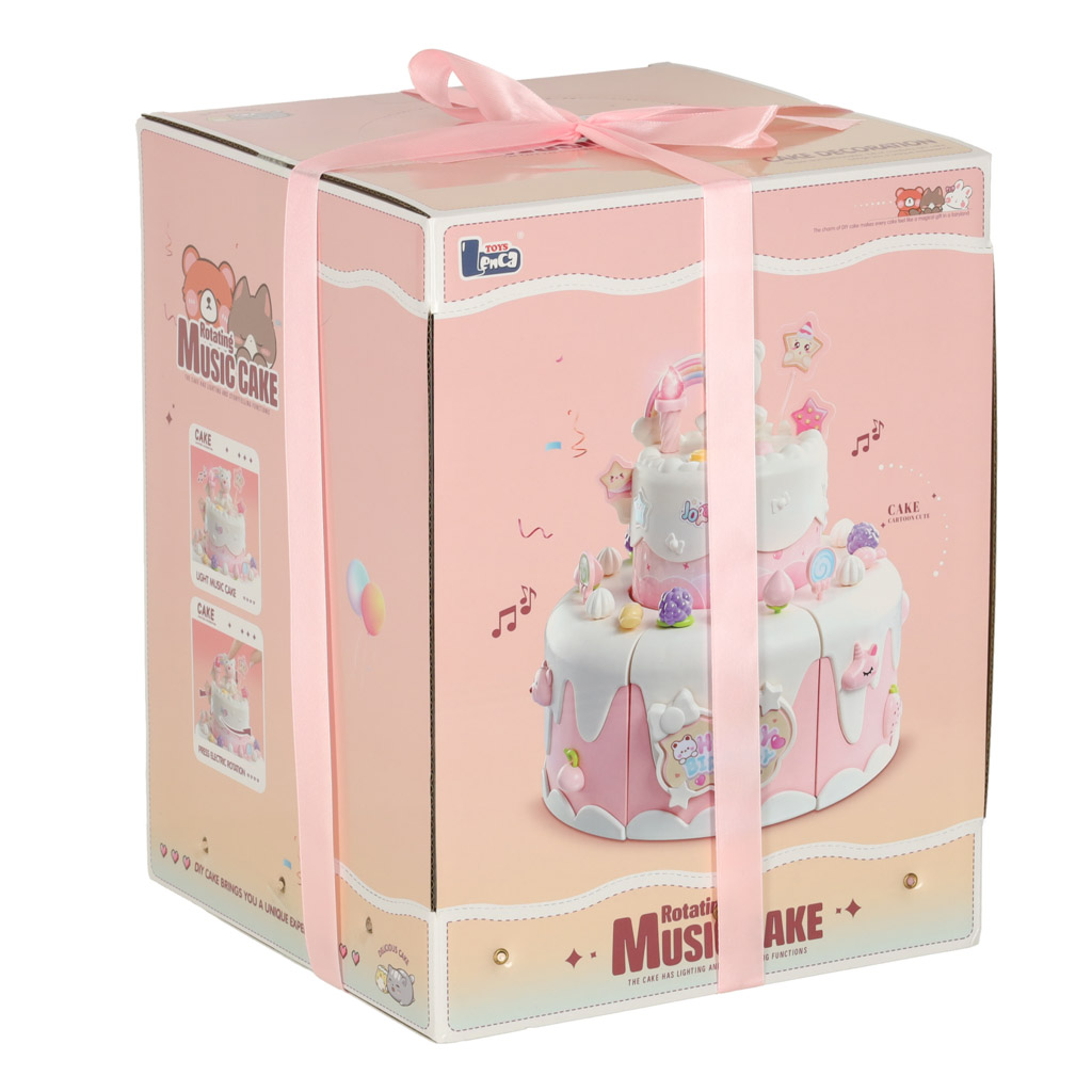 You can give the two-story toy cake to your child for his birthday. After inserting the batteries, the cake plays three cheerful melodies. The cake also contains a hidden surprise – when you press the teddy bear or unicorn figurine, the cake rotates, playing a special song.