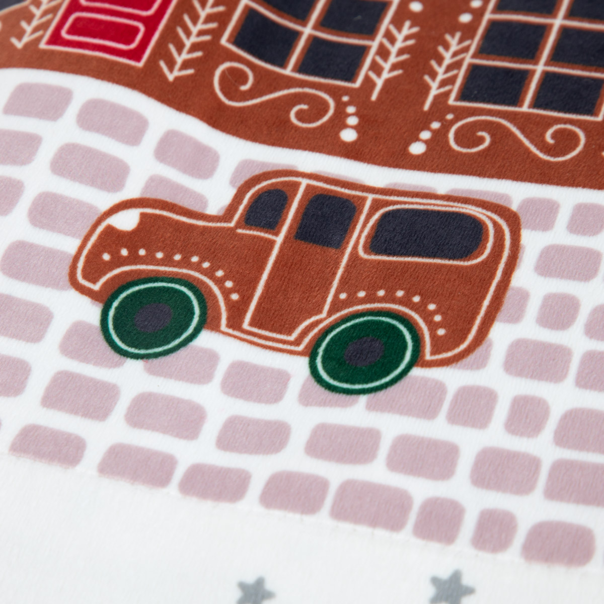 The LAPLAND blanket impresses with its softness and charming festive pattern. Full of cheerful details such as gingerbread houses, reindeer and winter accents, it brings a warm festive atmosphere to any interior. The soft white sherpa on the inside makes you feel extremely comfortable and cosy when you wrap yourself in this blanket.