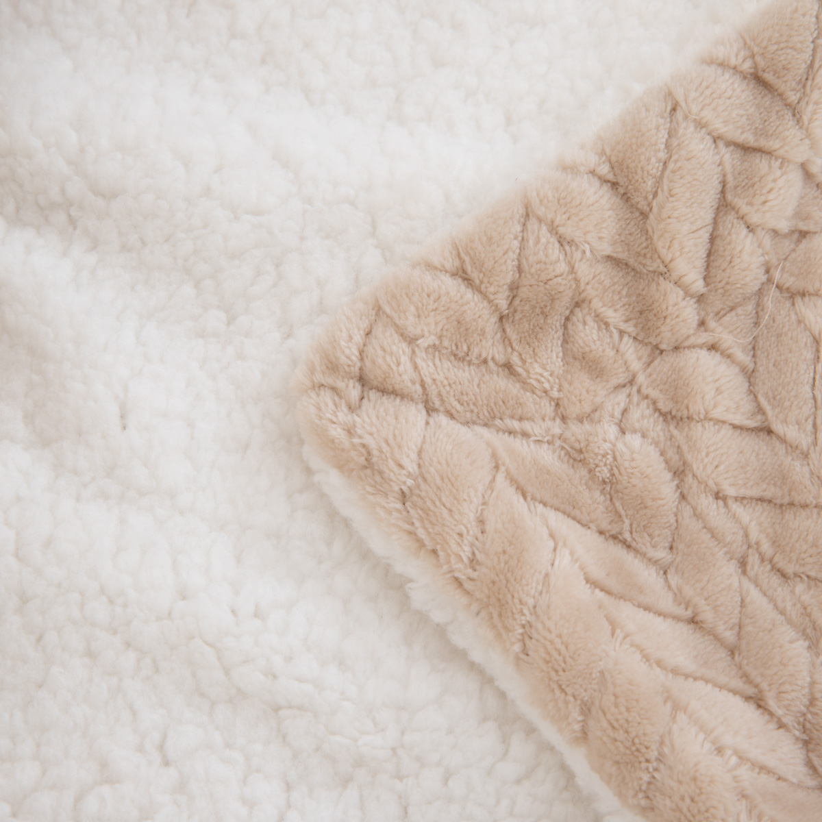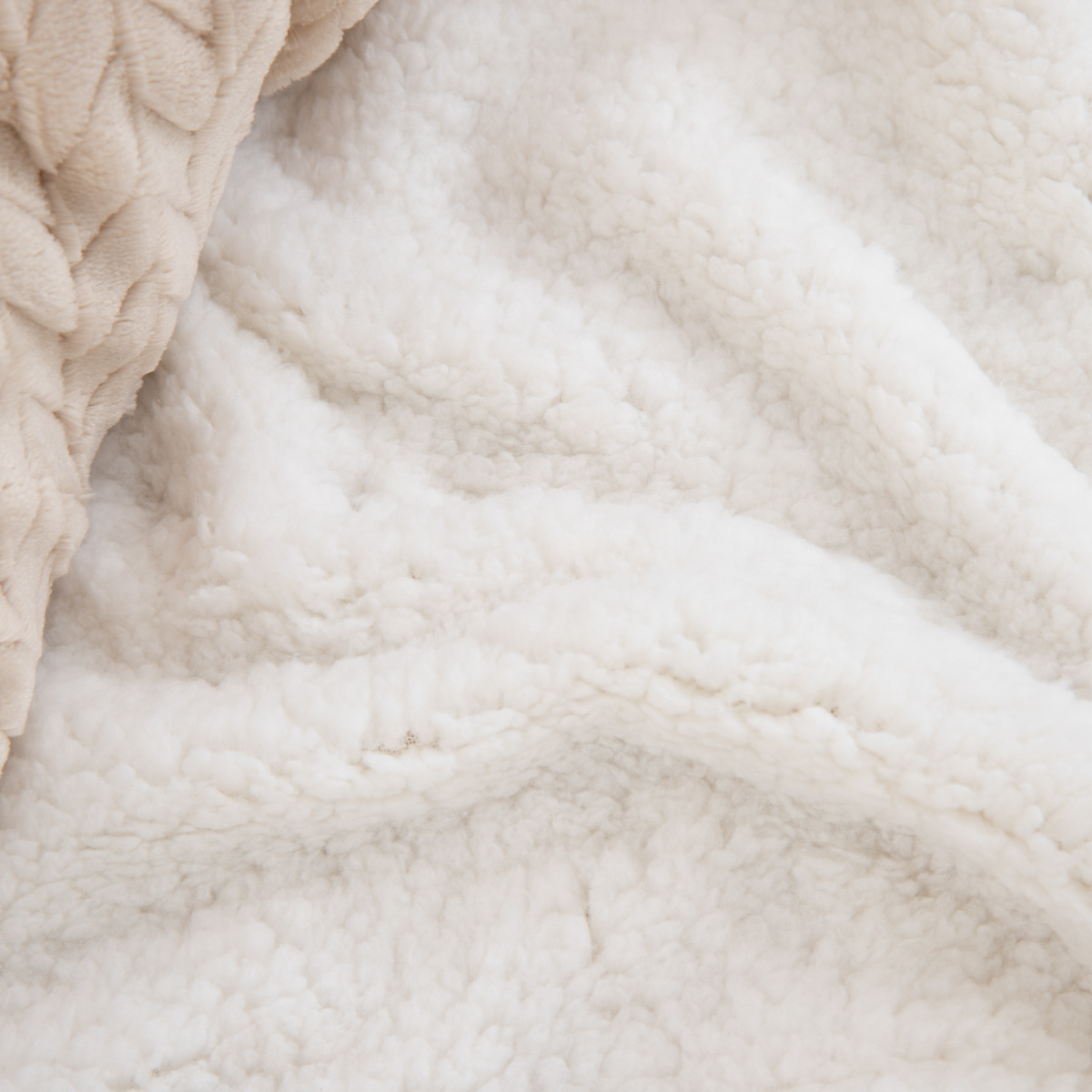 The LAREN blanket has a beautiful beige color with a warm tone. The pattern of the blanket is a fine herringbone. The bottom of the blanket is in the form of a white sheepskin. The blanket is soft, pleasant to the touch and guarantees a comfortable rest. The blanket is 150 cm wide and 200 cm long.