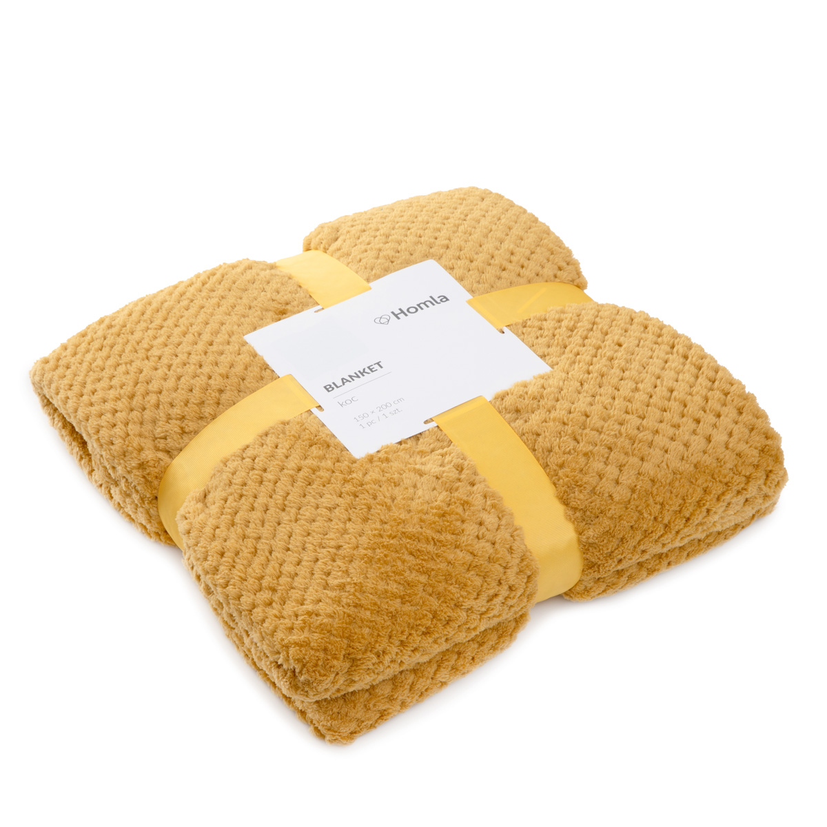 The NOAH mustard blanket measures 150×200 cm, so it can also be used as a decorative bedspread. It stands out not only in its elegant mustard coloring, but also for its intriguing texture reminiscent of rice grains. The interesting stitching with geometric character will also suit modern interiors.