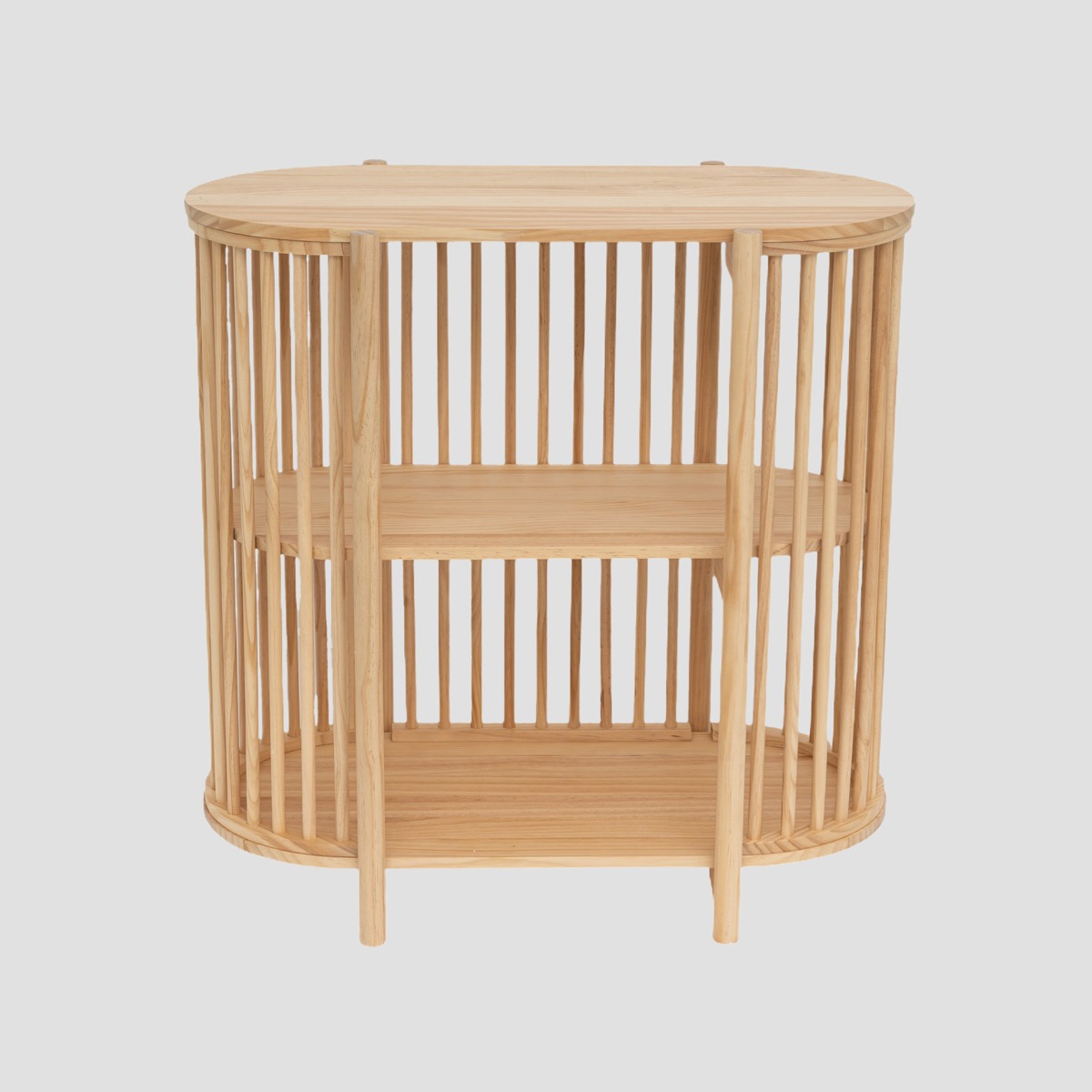 The SENSUS bookcase fits perfectly into modern interior design. The oval form and the rung structure on the sides create an extremely original piece of furniture, which surprises with its simplicity and precision. It is a light construction made of wood, which makes it a perfect match for both minimalist and traditional arrangements. If you are looking for a piece of furniture that will stay with you for years, despite changing trends, the SENSUS bookcase will be a very good choice.