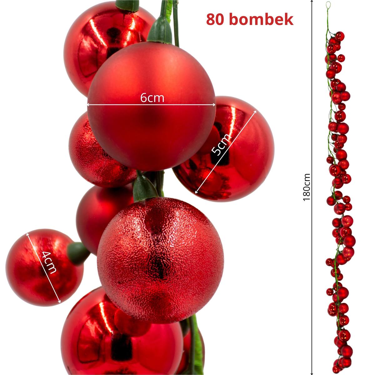 GIRLANDA 180CM WITH BOMBIES 80 SZT.MICA RED is a quick and effective way to bring the magic of Christmas into your home. It is ready to hang, looks beautiful and creates a special atmosphere without any additional preparations.