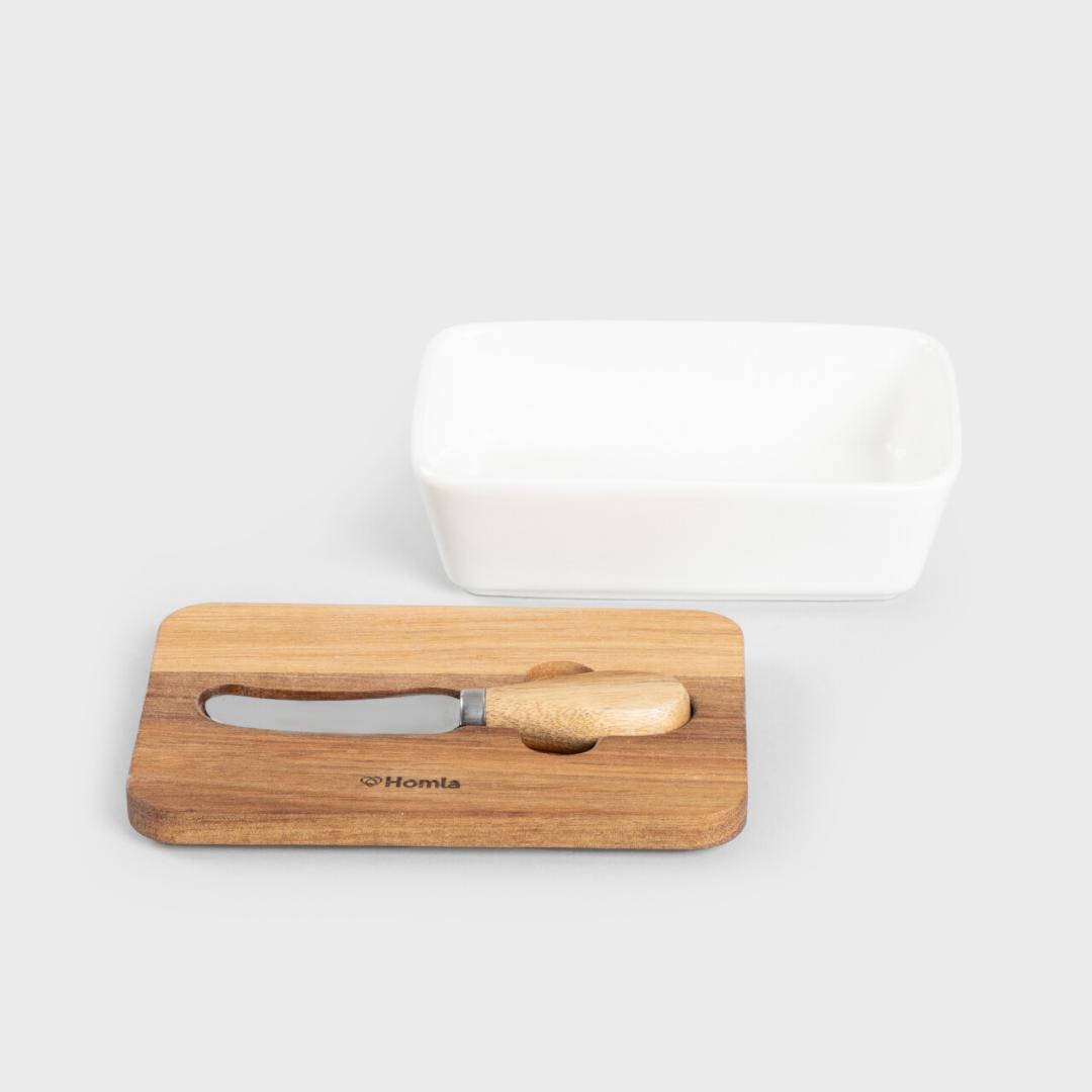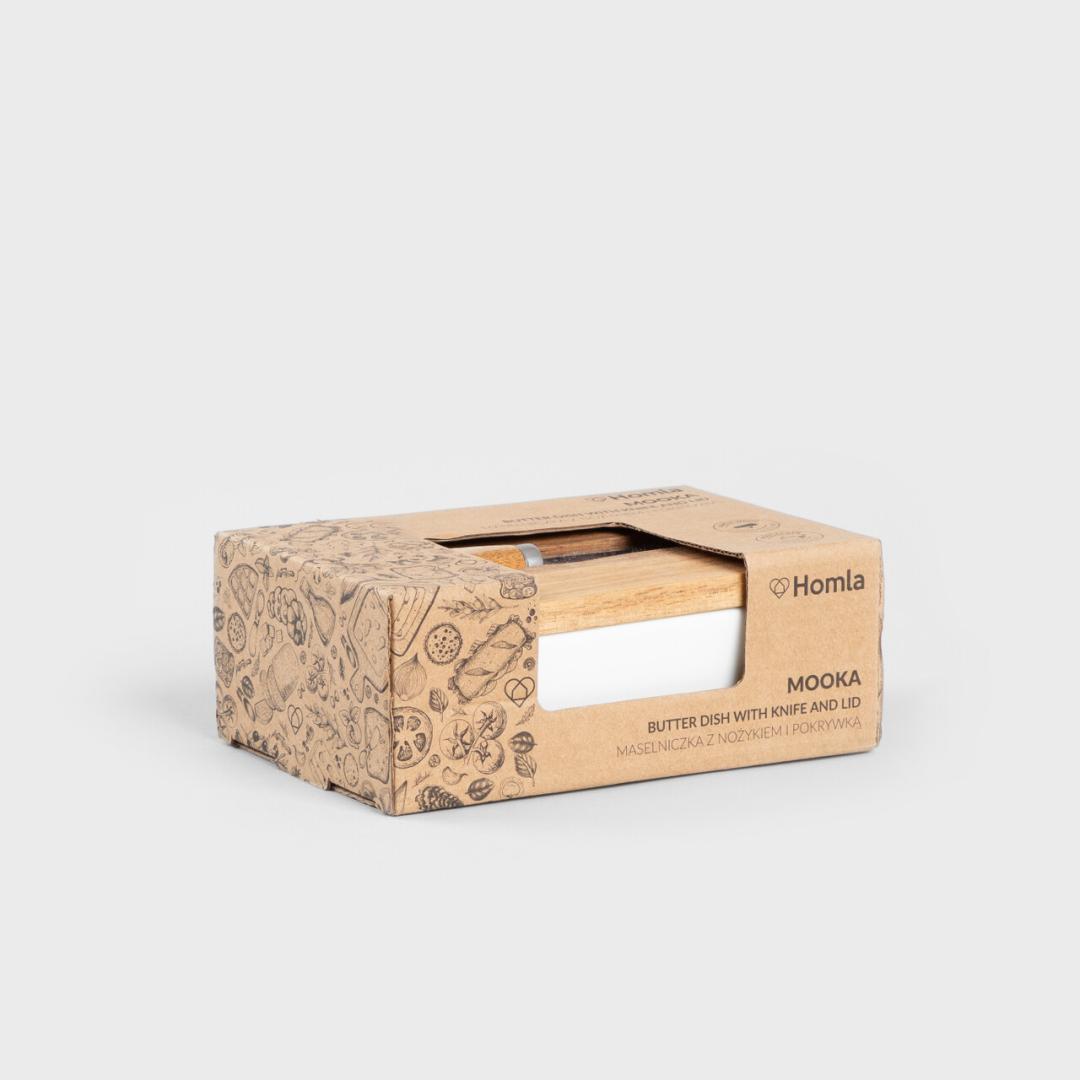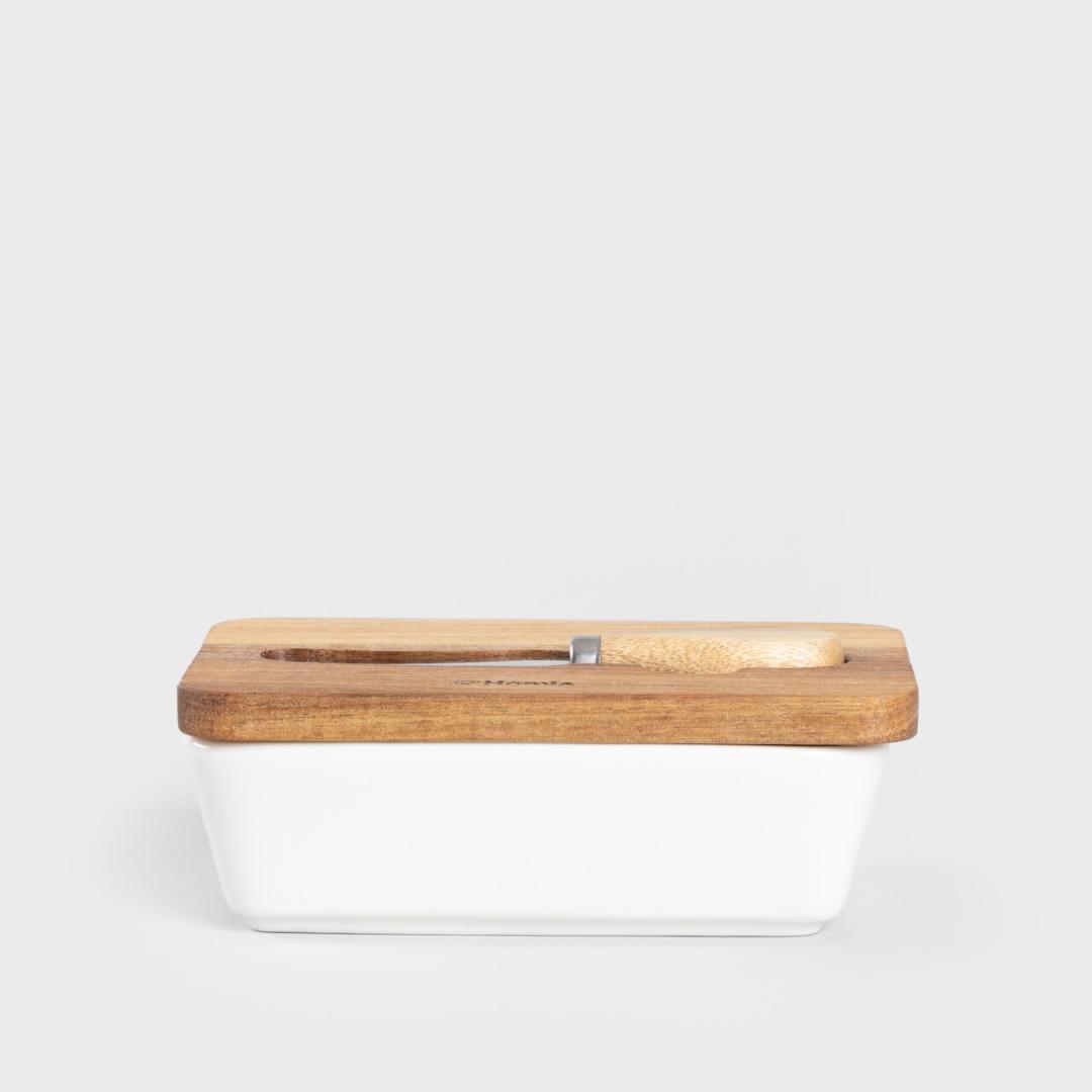 Is your kitchen interior lacking a butter dish? Stock up on a Porcelain butter dish with knife and acacia lid MOOKA and serve butter in a functional and beautiful container! Not only will it be perfect for storing the food item, but it will also perfectly arrange your kitchen. It will complement interiors in art deco style and even in modernist style.