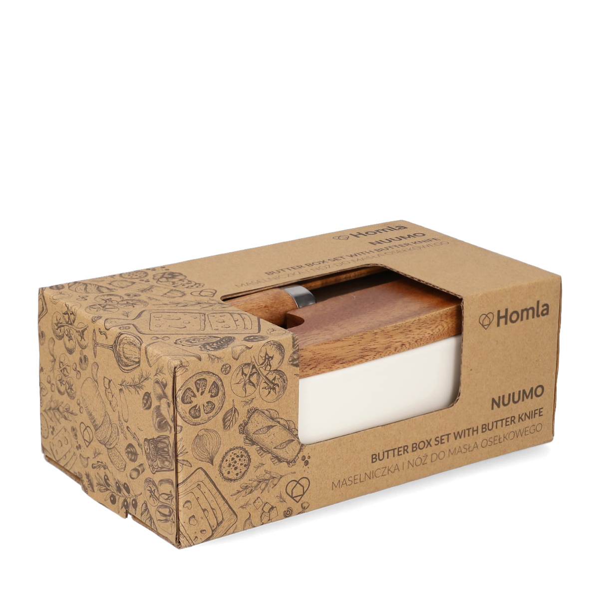 A new installment of the iconic MOOKA buttercreamer has joined the ranks of your favorite series! The fluid shape allows you to conveniently store your nut butter, and the wooden lid with a built-in place for a knife to spread the butter is a convenient solution that will delight your guests. The size of the butter dish is 16x10cm, so you can conveniently store a suitable portion of your favorite butter, and find a place for it on any table. Spreading knife available in the set.