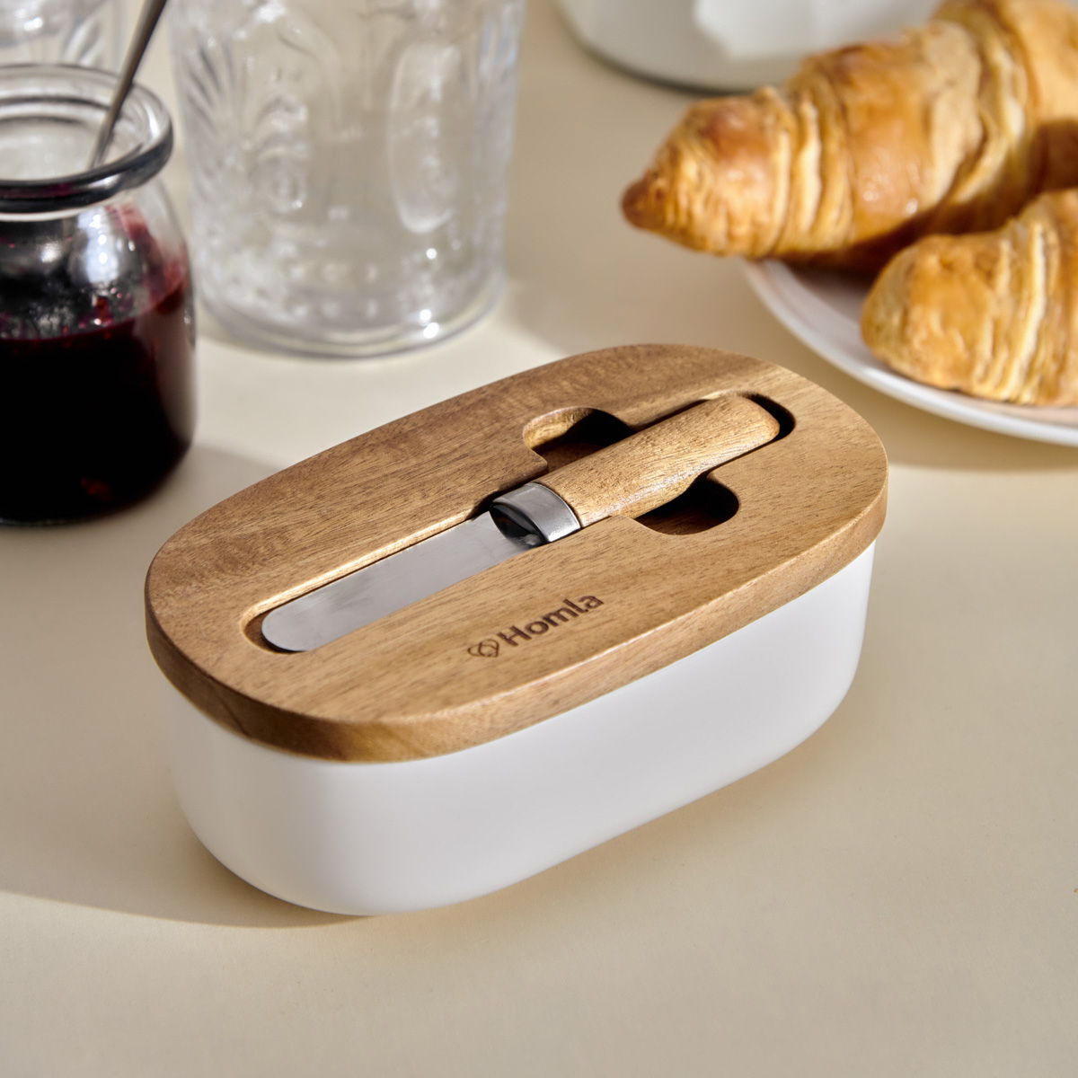 A butter dish is a practical solution in any kitchen. It allows you to store butter aesthetically in the refrigerator, as well as serve it to the table during a family breakfast together – without foil, and without having to scrape off a too-cold cube with a knife. The MOOKA whey butter dish will make a beautiful complement to any dining room arrangement.