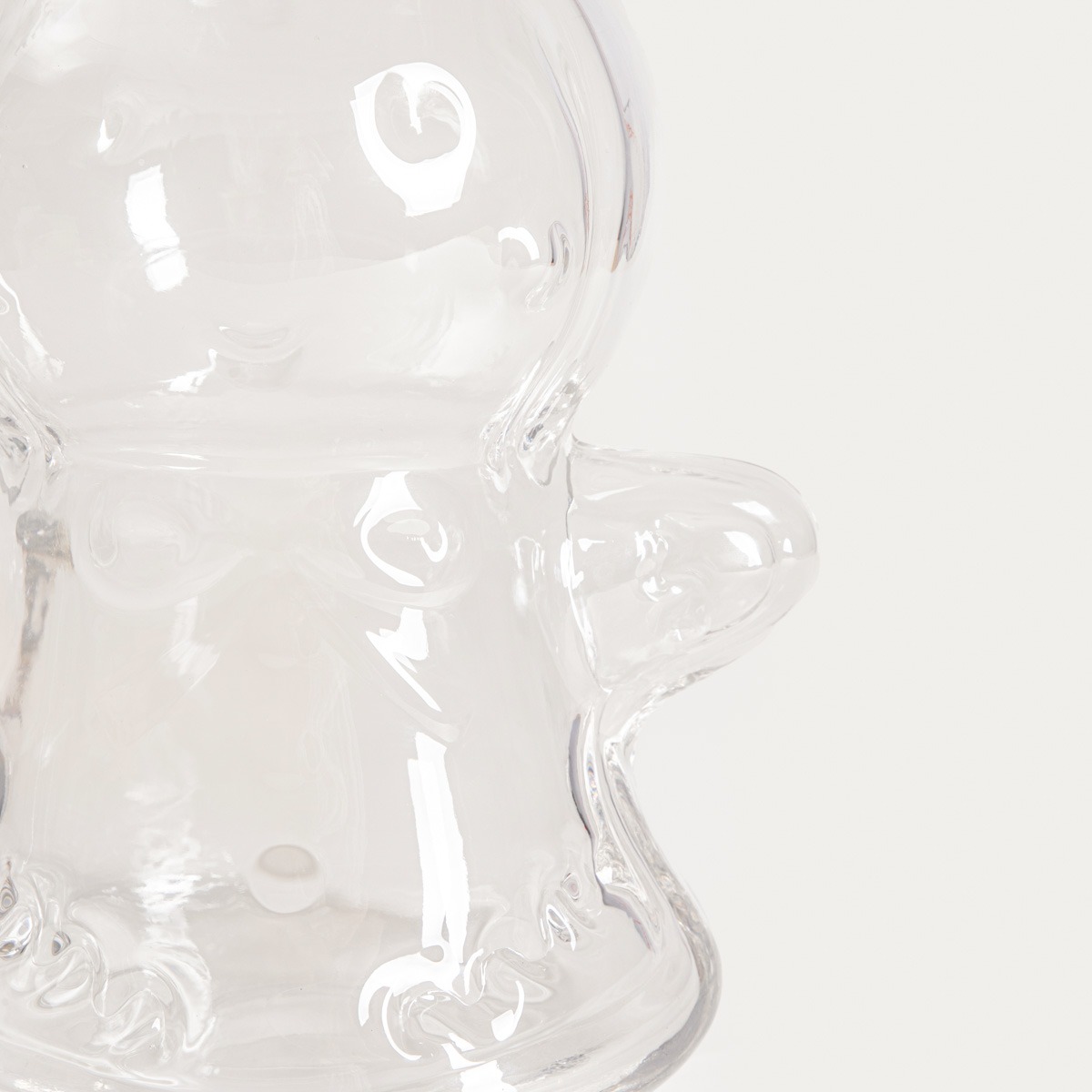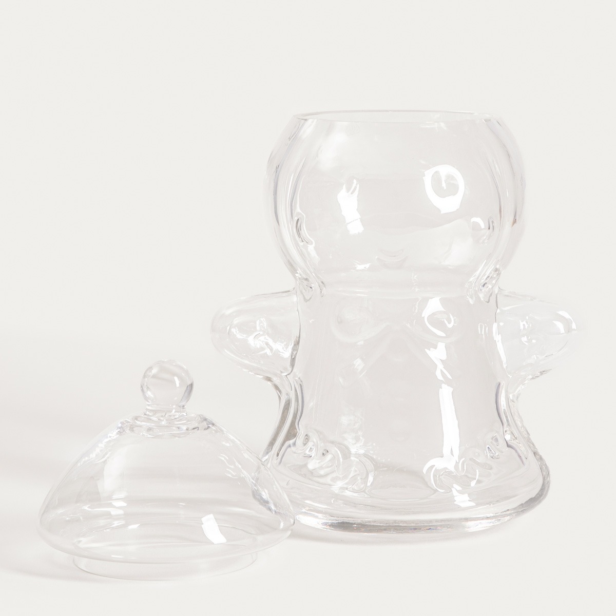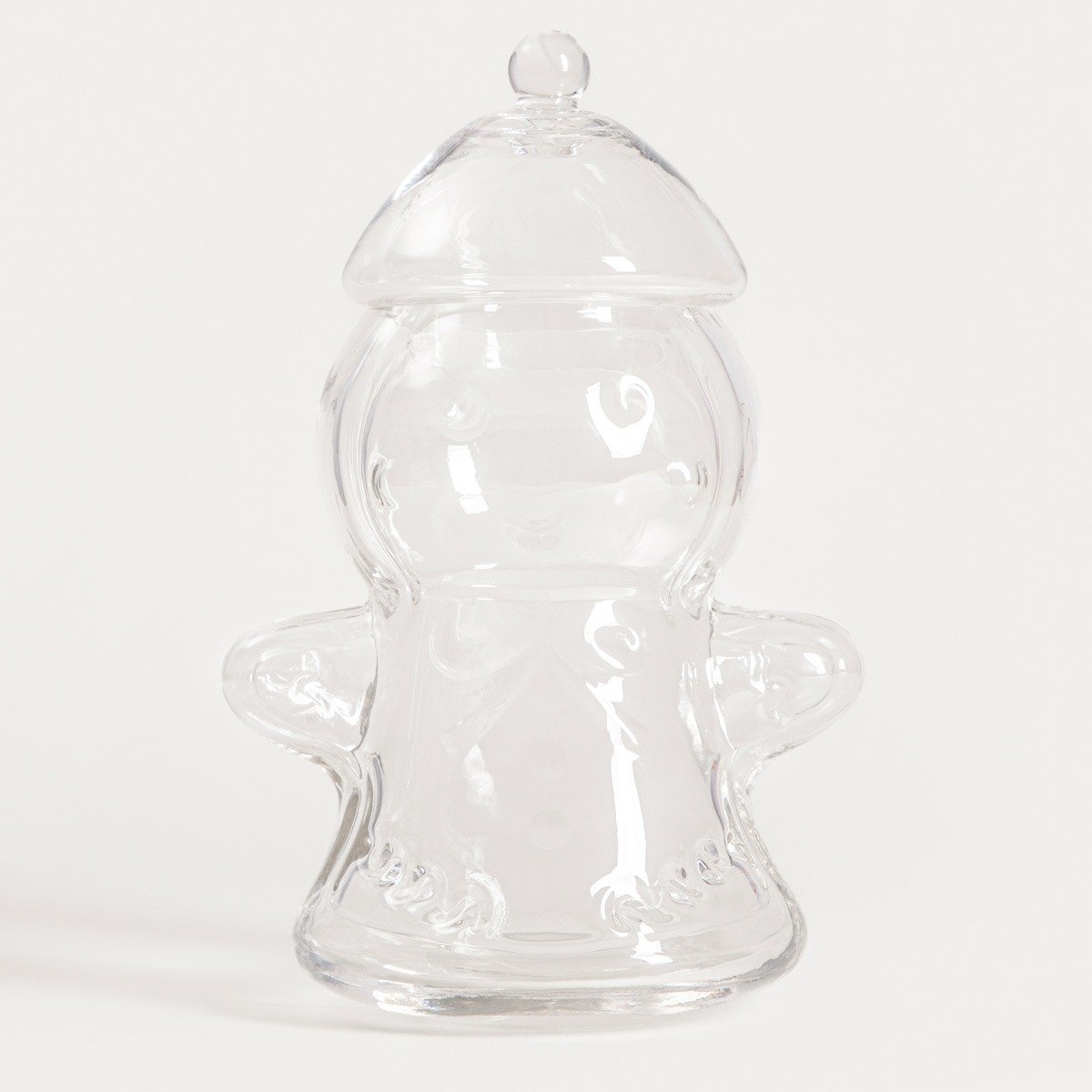 Glass container in the shape of a gingerbread man for Christmas decorations and sweets