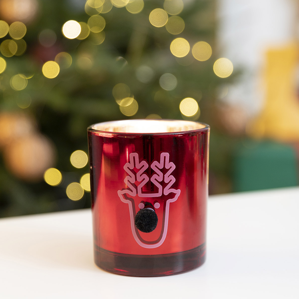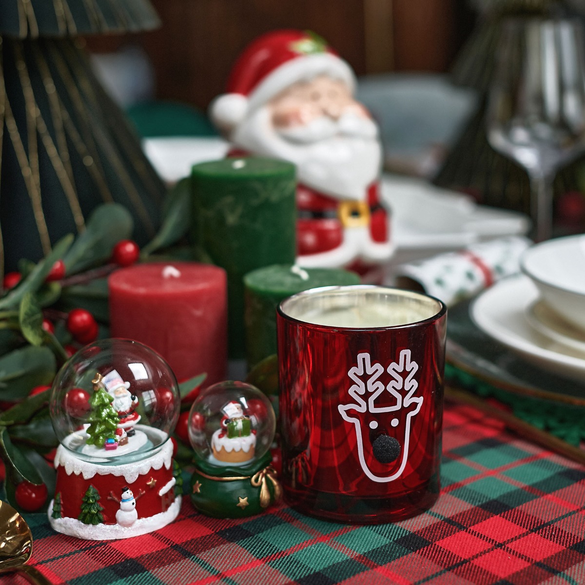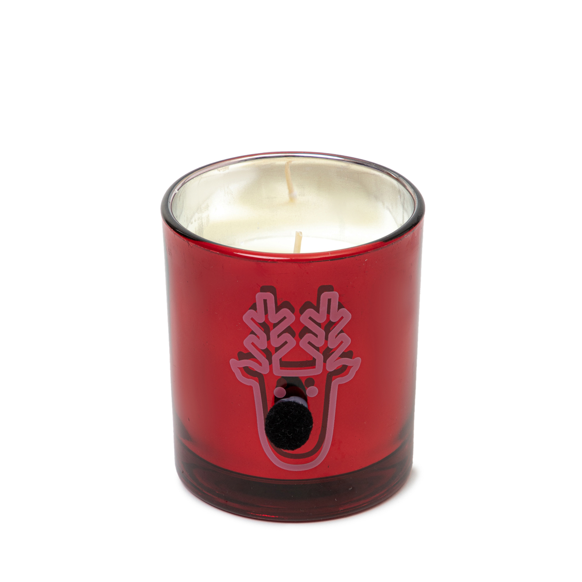 Vanilla is one of the most popular scents that will gently envelop your interior with a sweet aroma. The candle is housed in a red jar, which is decorated with an image of a reindeer. The reindeer’s nose in the form of a pompom is an element which gives the candle an unusual and unique character. The product has a diameter of 10 cm.