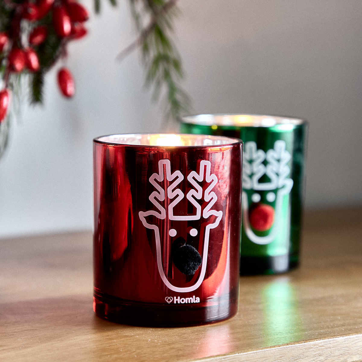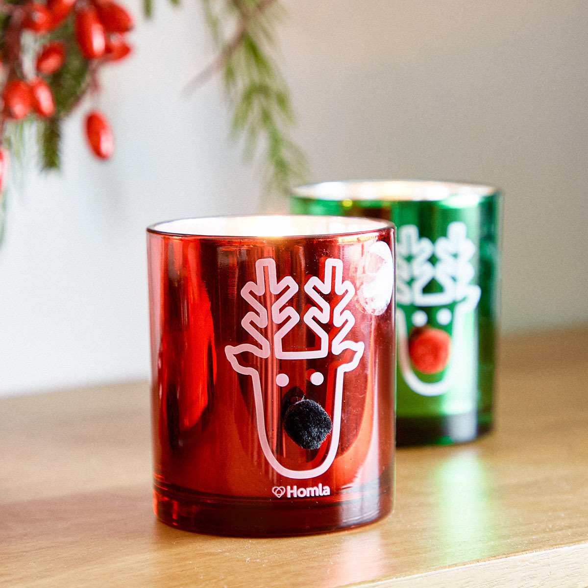 Vanilla is one of the most popular scents that will gently wrap your interior with a sweet aroma. The candle was placed in a red jar, which is decorated with the image of a reindeer. The element that gives an unusual and unique character to the candle is the nose of the reindeer in the form of a pompom. The diameter of the product is 10cm.