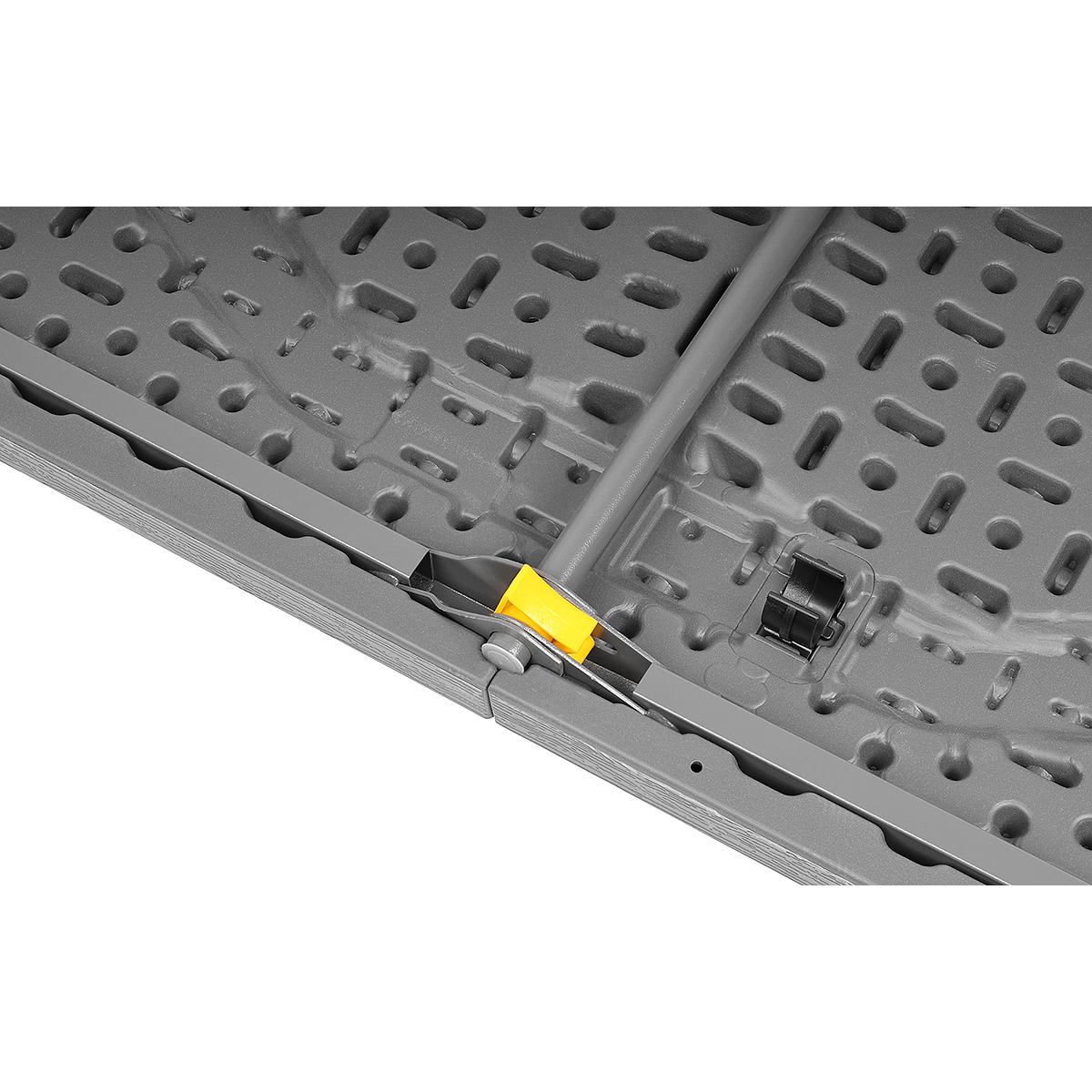 - Materials: HDPE – top, steel – legs, plastic locking mechanism