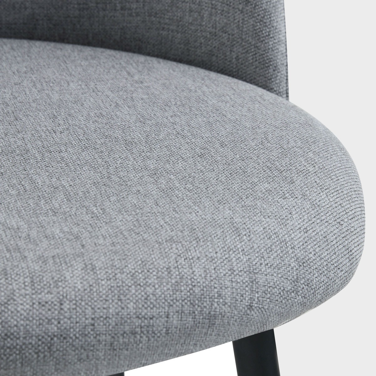 The AMPLA chair combines modern minimalism with timeless elegance. The delicate light grey upholstery gives it a subtle character, while the ergonomic form ensures comfort during everyday use. Black metal legs add to its stability and durability.