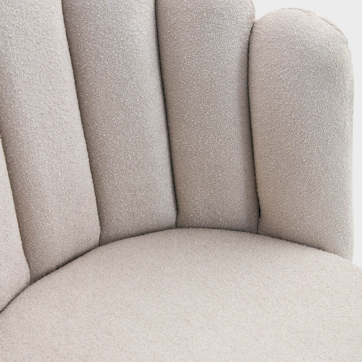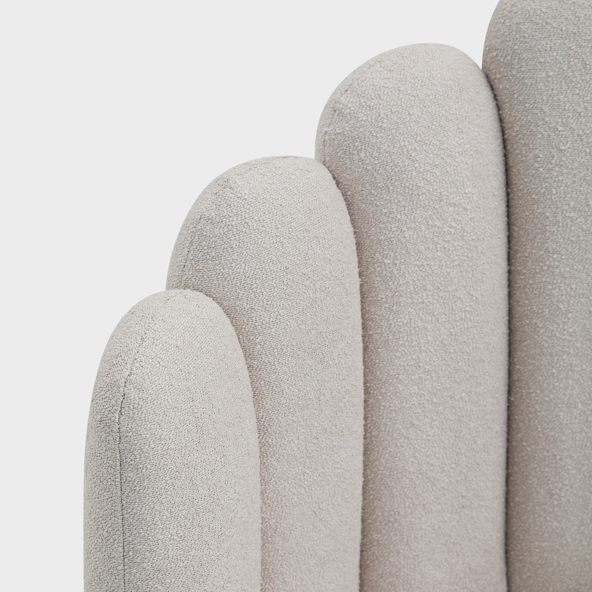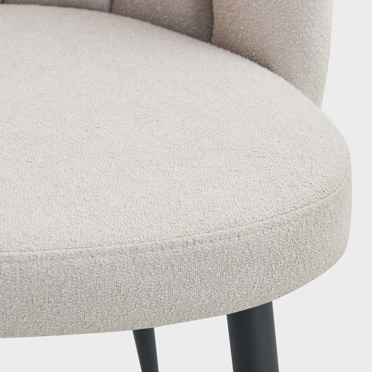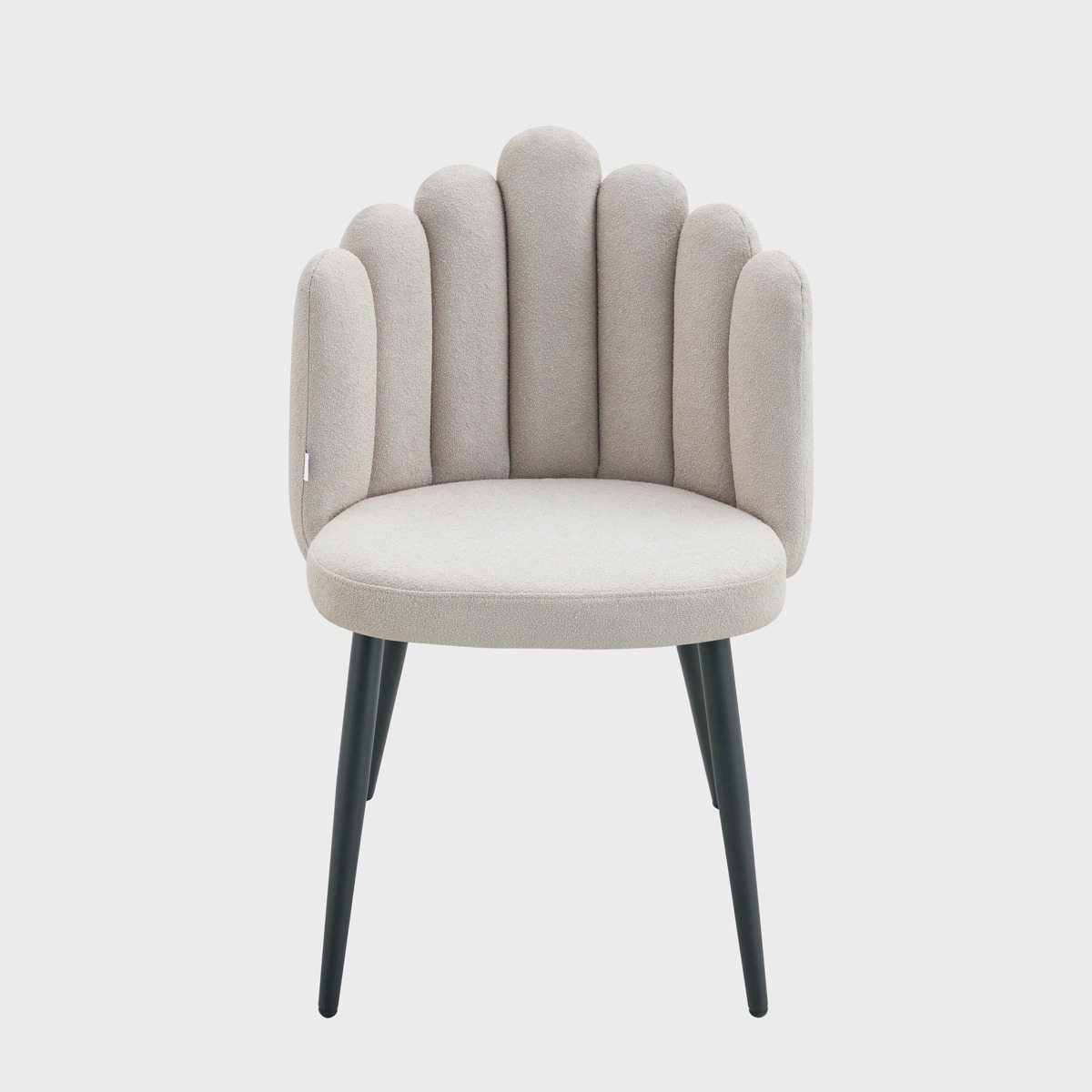 The AULA chair combines designer looks with unparalleled comfort. Its shell-inspired backrest gently wraps around your back for maximum comfort. Upholstered in a pleasant-to-touch beige fabric, it brings a subtle, modern aesthetic to the interior.