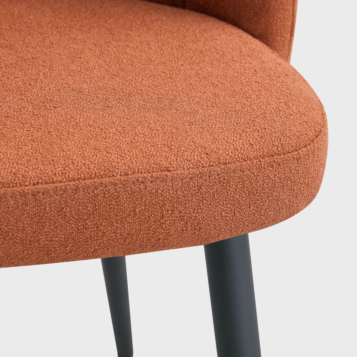 The chair is upholstered in high-quality fabric that is soft and pleasant to the touch. The stable black legs guarantee durability and robustness of the design.