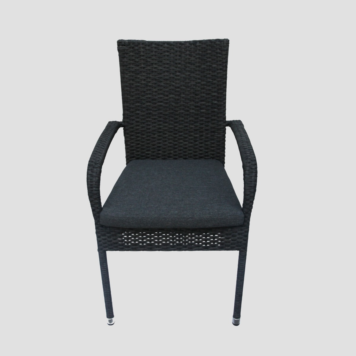 The chair’s powder-coated steel construction ensures great durability. The seat and backrest are woven from high-quality technorattan rope. The cushion included with the chair is sewn from resistant and pleasant to the touch polyester material.