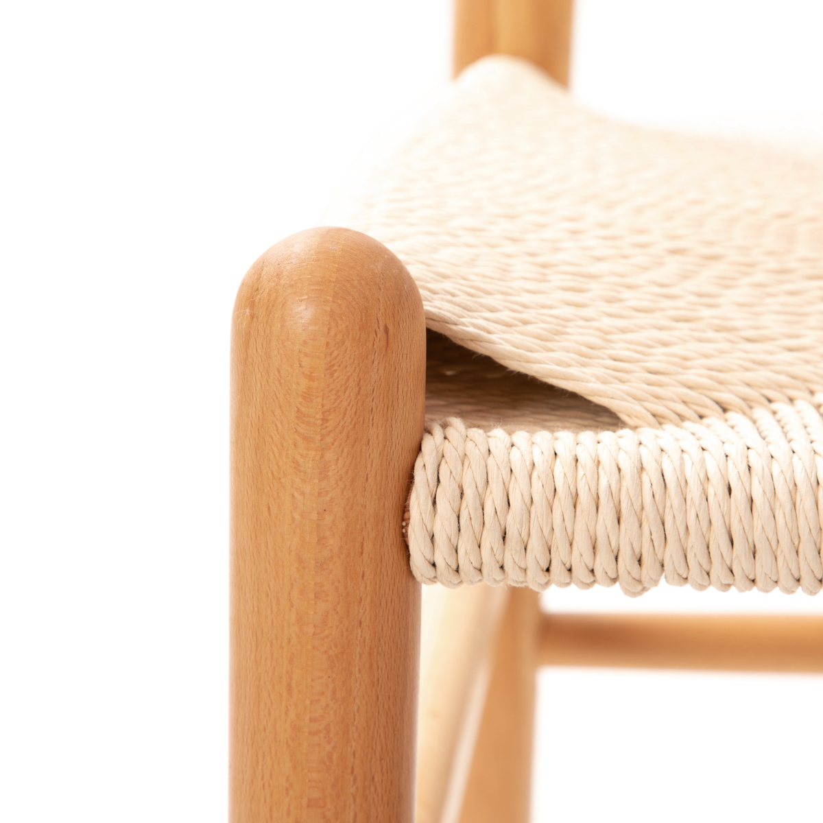 The chair’s frame is made of high quality wood, which ensures the furniture’s stability. We used durable paper fibers to create the woven seat.