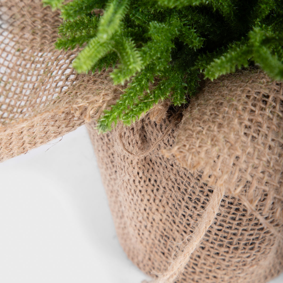 The tree is made of durable plastic, which provides resistance to damage. The base is decorated with jute material, tied with a string.