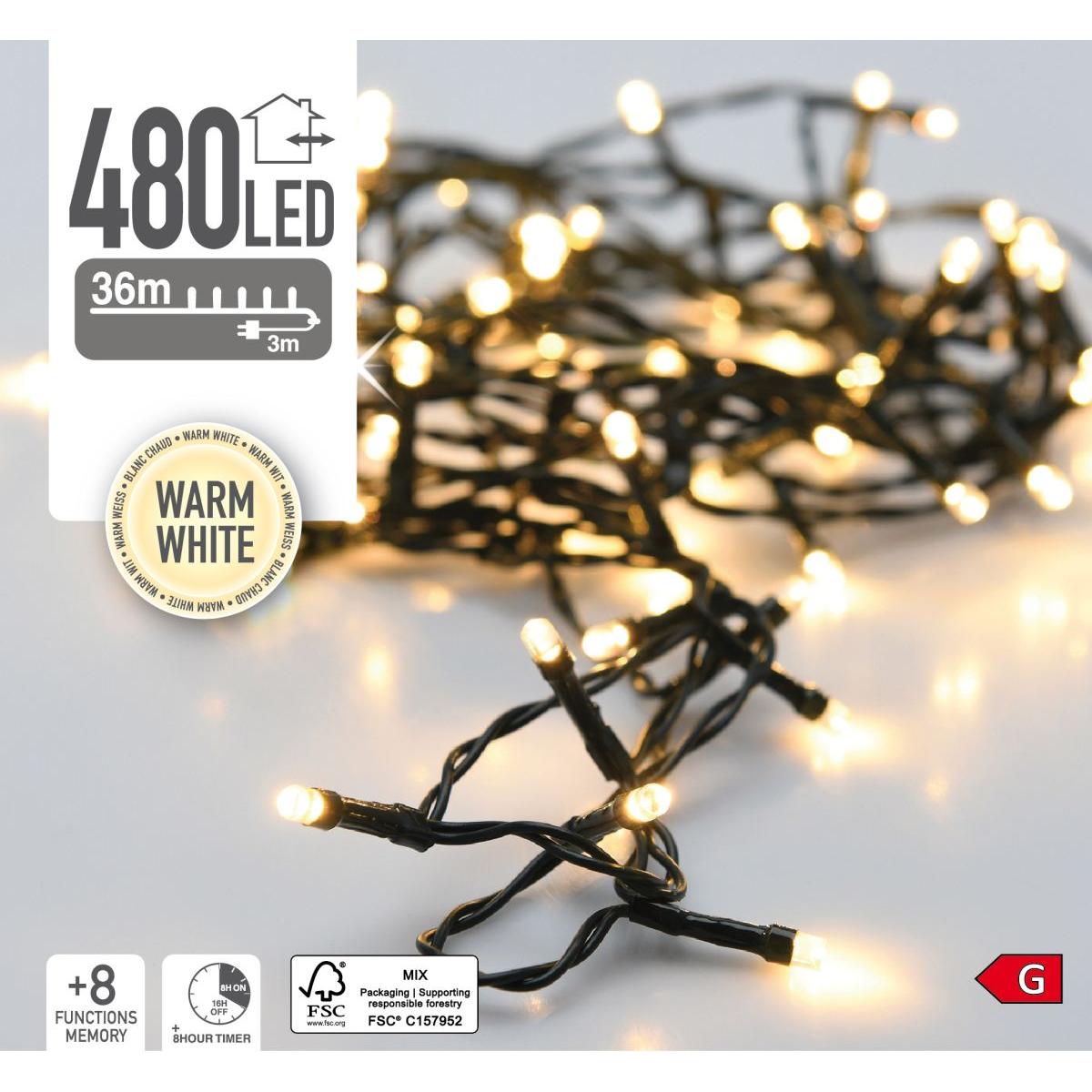 CHRISTMAS TREE LIGHTS LIGHT CHAIN 480 LED TIMER WARM WHITE